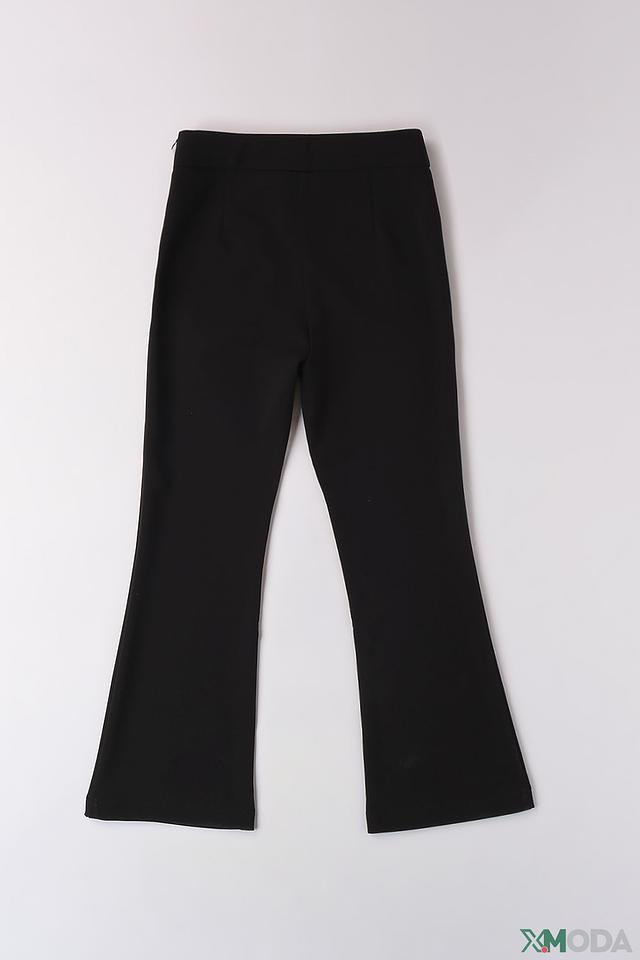 Особенностью модели является декор на поясе в виде стильной металлической цепочки, которая придаёт брюкам более нарядный вид. Клёш от колена делает силуэт более женственным и изящным. Данные брюки идеально подойдут для повседневной носки, а также для особых случаев.