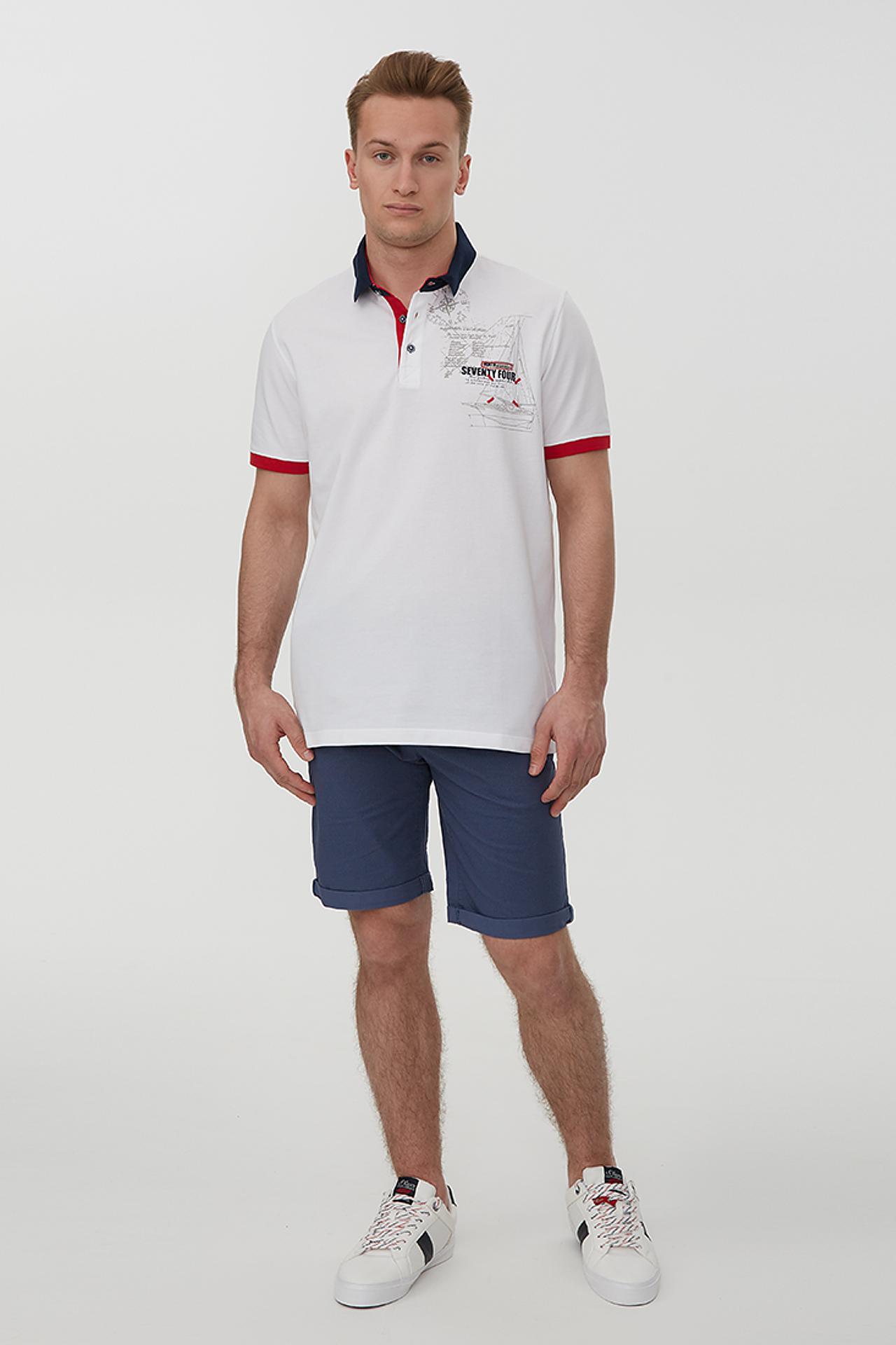 - Универсальность: Поло легко сочетается как с джинсами и шортами для создания непринужденного образа, так и с брюками чинос для более собранного повседневного комплекта. Это универсальный элемент гардероба, подходящий для различных случаев.