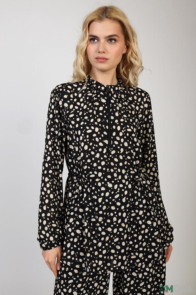 Модель имеет длинные рукава, слегка расширенные к запястью, что придает ей особый шарм. Застежка-молния расположена в верхней части блузы, позволяя регулировать степень раскрытия выреза. Блуза выполнена из высококачественного полиэстера, который обеспечивает комфорт в носке и легкость в уходе.