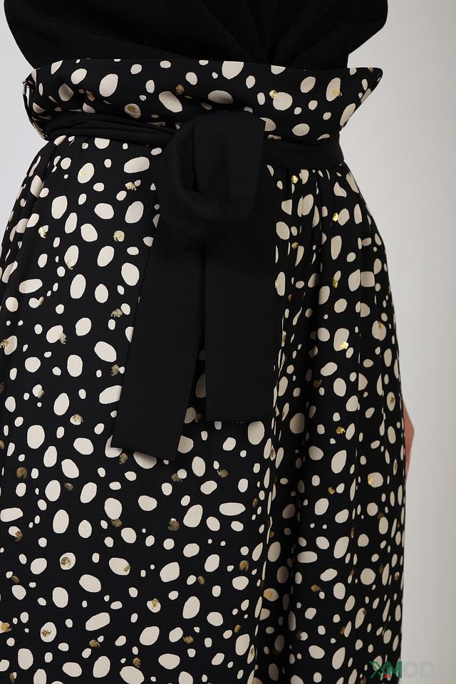 Женские брюки Joseph Ribkoff чёрного цвета с оригинальным принтом в виде горошка. Модель выполнена из полиэстера и имеет завышенную талию с поясом-завязкой, что обеспечивает комфортную посадку и подчёркивает фигуру. Состав: полиэстер 100%, Состав_подкладка полиэстер 100%