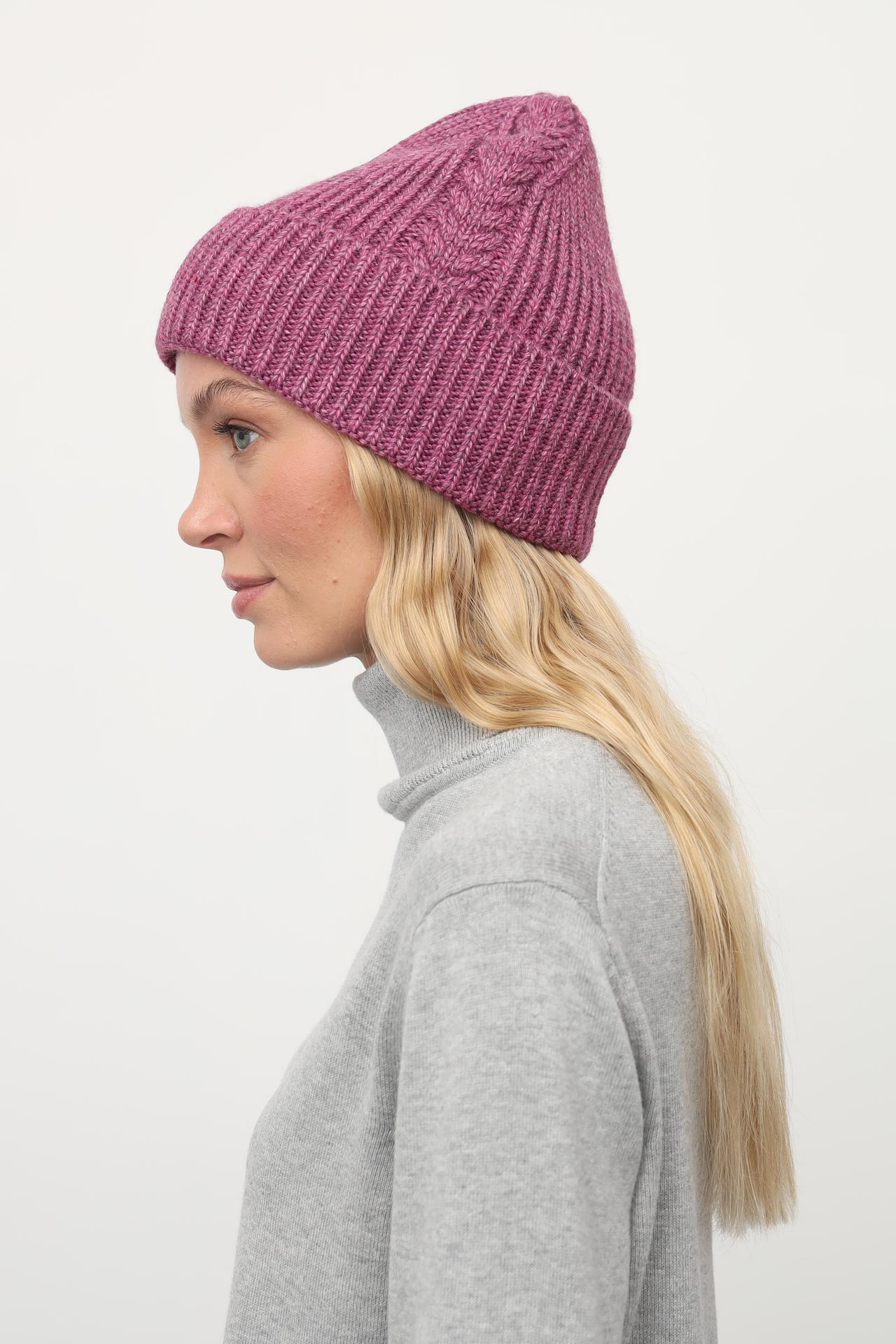 - Дизайн: Классическая шапка бини с отворотом, украшенная узором "косы". Универсальный фасон подходит большинству форм лица.