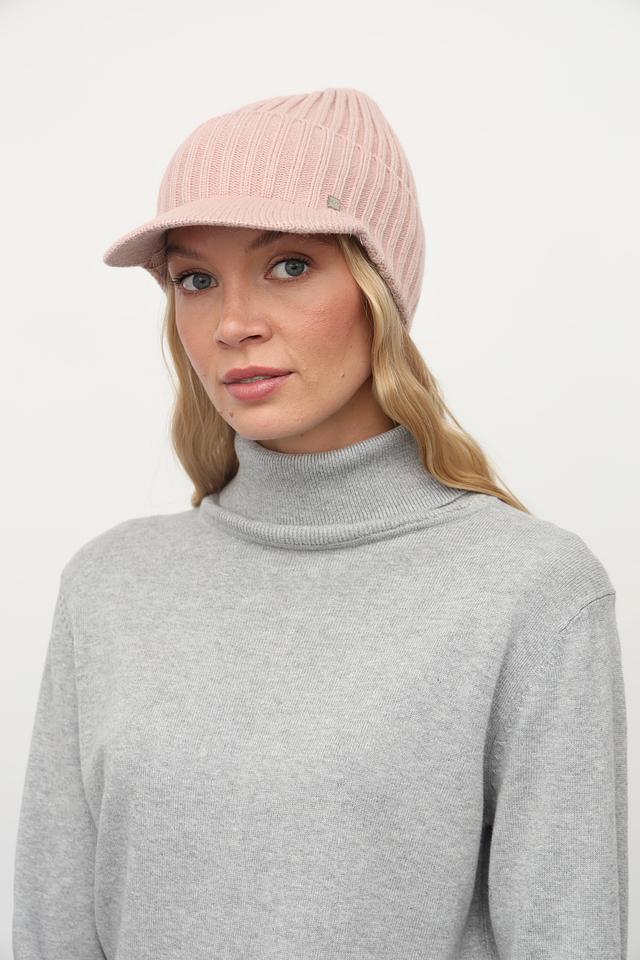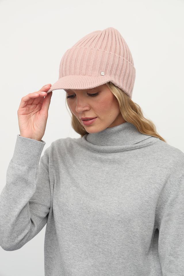Стильная шапка Julia Florenzi нежного розового цвета с небольшим козырьком. Изготовлена из мягкого вязаного полотна, обеспечивающего комфорт и тепло. Идеальный аксессуар для создания уютного и модного образа. Состав: вискоза 55%, нейлон 20%, полиамид 20%, кашемир 5%