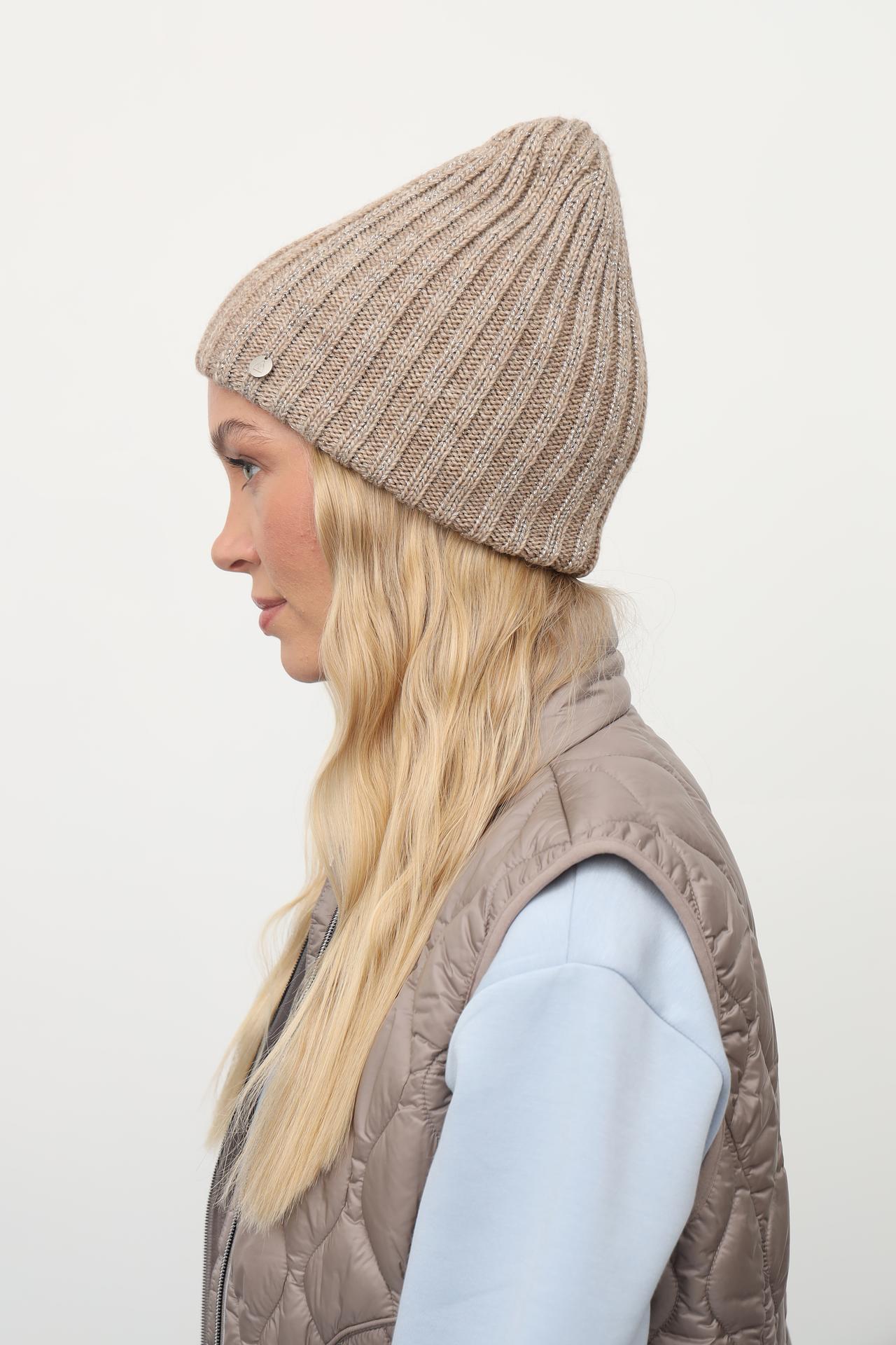 Шапка бини Adel бежевая с люрексом