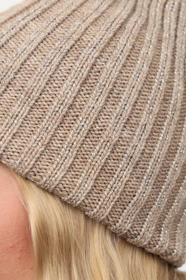 Представляем вам стильную и теплую шапку от бренда Julia Florenzi. Эта вязаная шапка выполнена в нежном бежевом цвете с добавлением серебристой нити, которая придает ей особый шарм и изысканность.