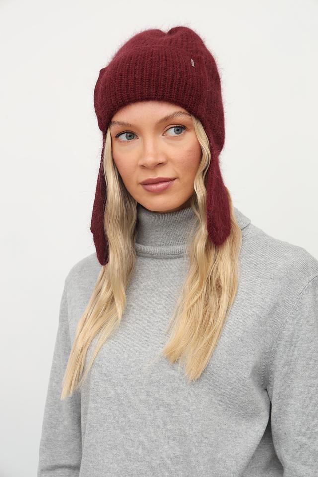 Бордовая вязаная шапка Julia Florenzi с ушами – стильный и теплый аксессуар для прохладной погоды. Изделие выполнено из мягкой пряжи с выраженной фактурой. Состав: ангора 60%, полиамид 40%