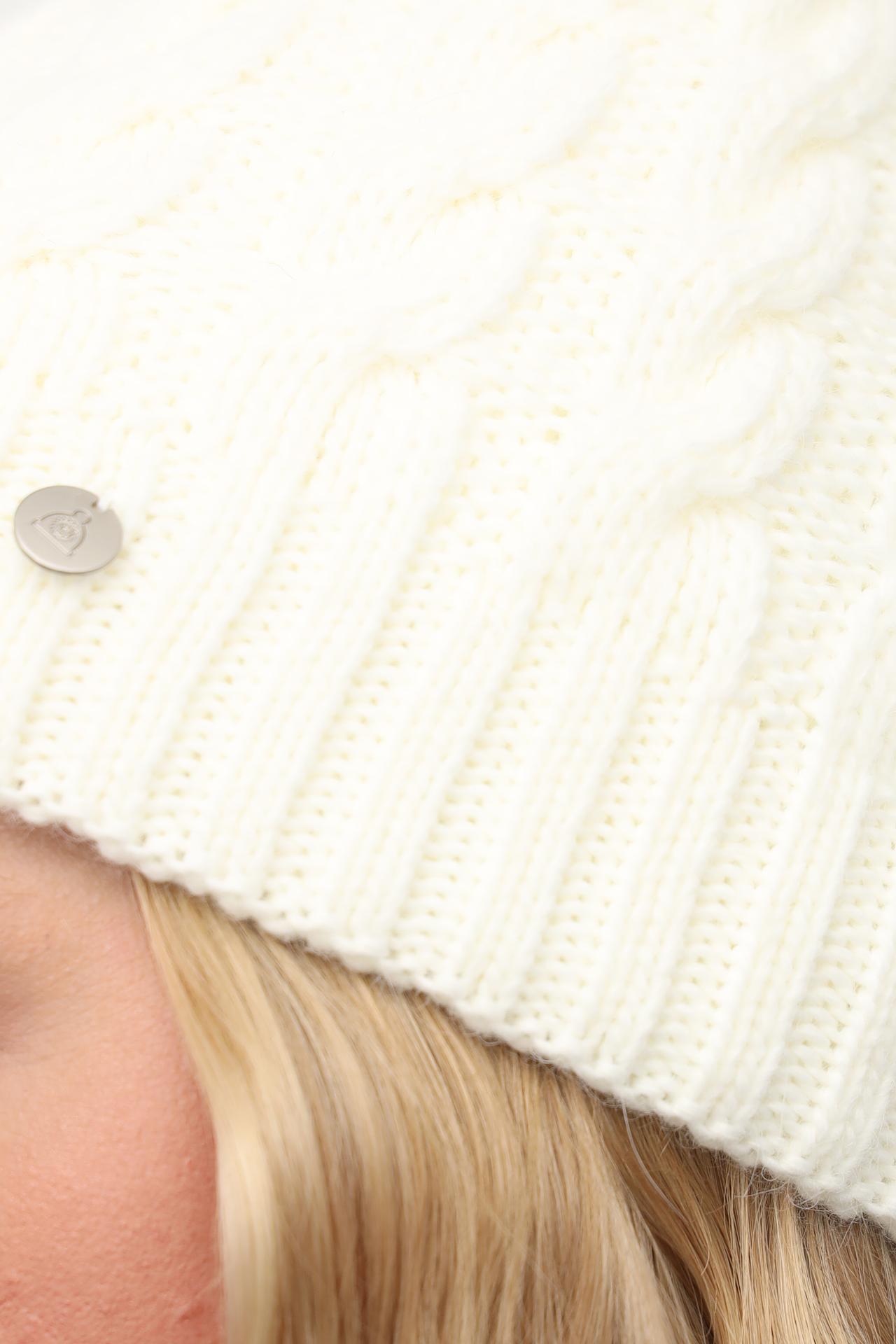 - Дизайн: Классическая модель с актуальным узором «косы» и аккуратным металлическим элементом бренда. Шапка имеет универсальный размер и хорошо тянется.