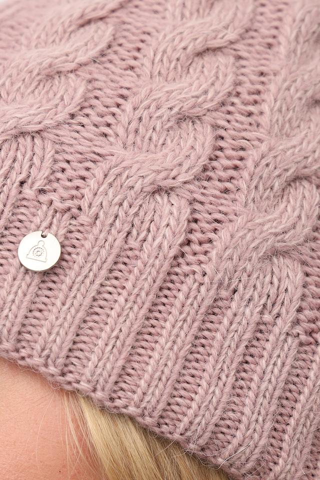 Особенностью этой шапки является рельефный узор из кос, придающий ей объем и оригинальность. Спереди шапка декорирована небольшой подвеской с логотипом бренда. Эта шапка станет отличным дополнением к вашему зимнему образу и надежно защитит от холода.