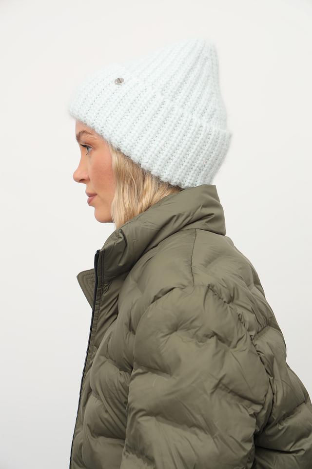 Шапка декорирована небольшим металлическим элементом, добавляющим изысканности. Классический белый цвет легко сочетается с любой одеждой. Мягкий, эластичный манжет обеспечивает плотное прилегание и дополнительную защиту от ветра.