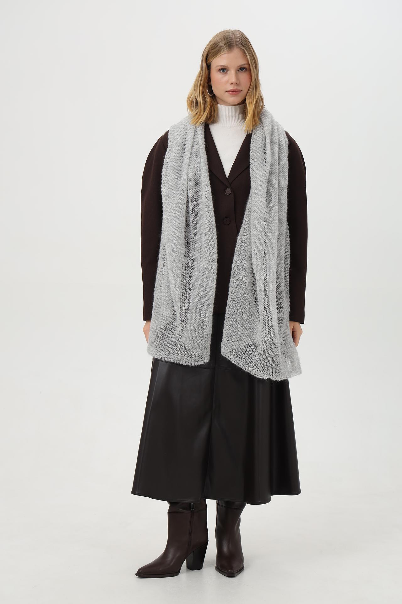 - Дизайн: Классический шарф с деликатной ажурной вязкой. Универсальный аксессуар, который дополнит как повседневный, так и вечерний наряд.