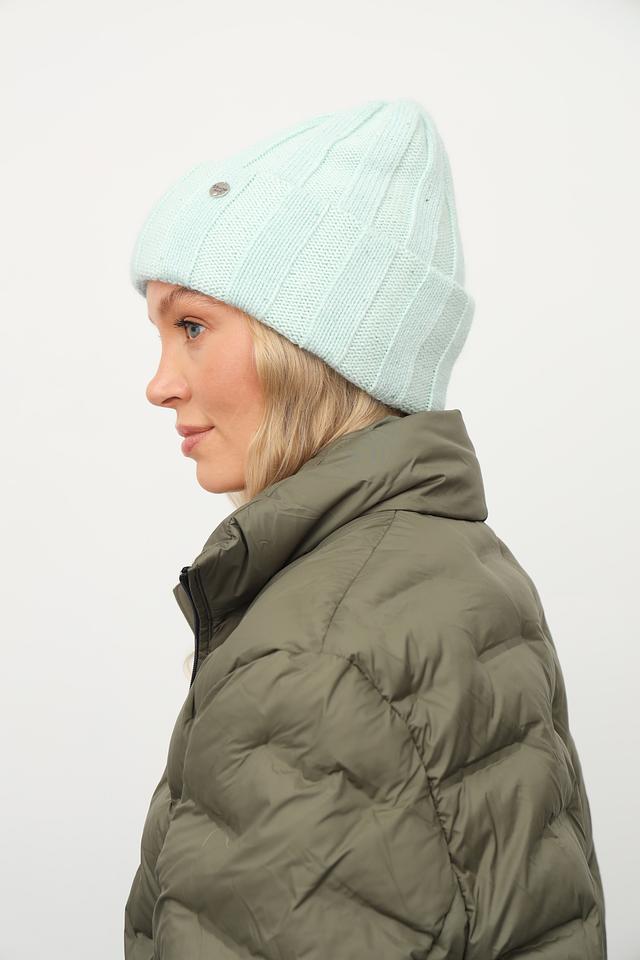 Модель выполнена в приятном бирюзовом цвете, который легко сочетается с различной верхней одеждой. Шапка изготовлена из сочетания материалов: 10% шерсти, 40% нейлона, 30% вискозы и 20% ангоры. Это обеспечивает тепло, мягкость и комфорт в носке.