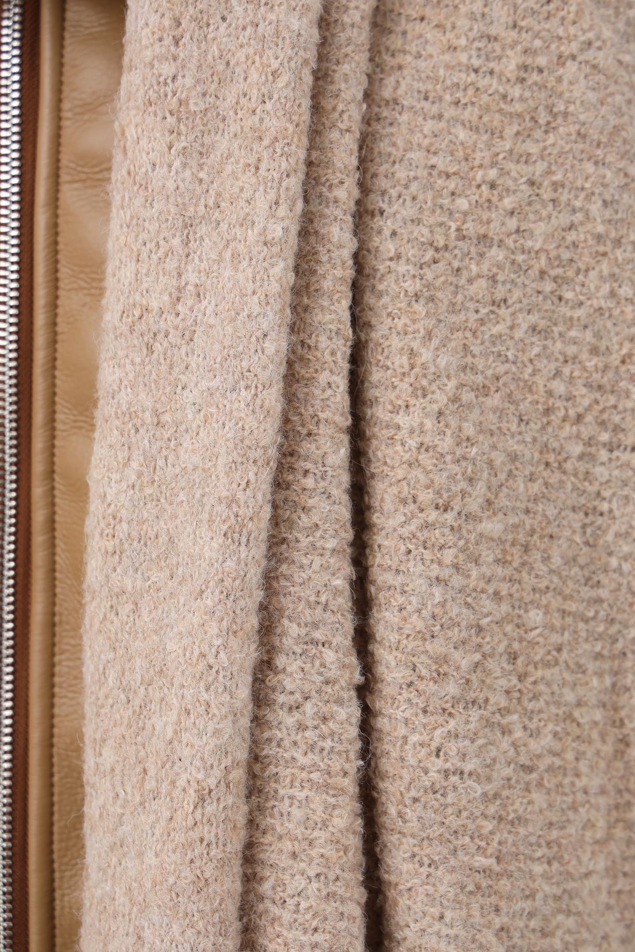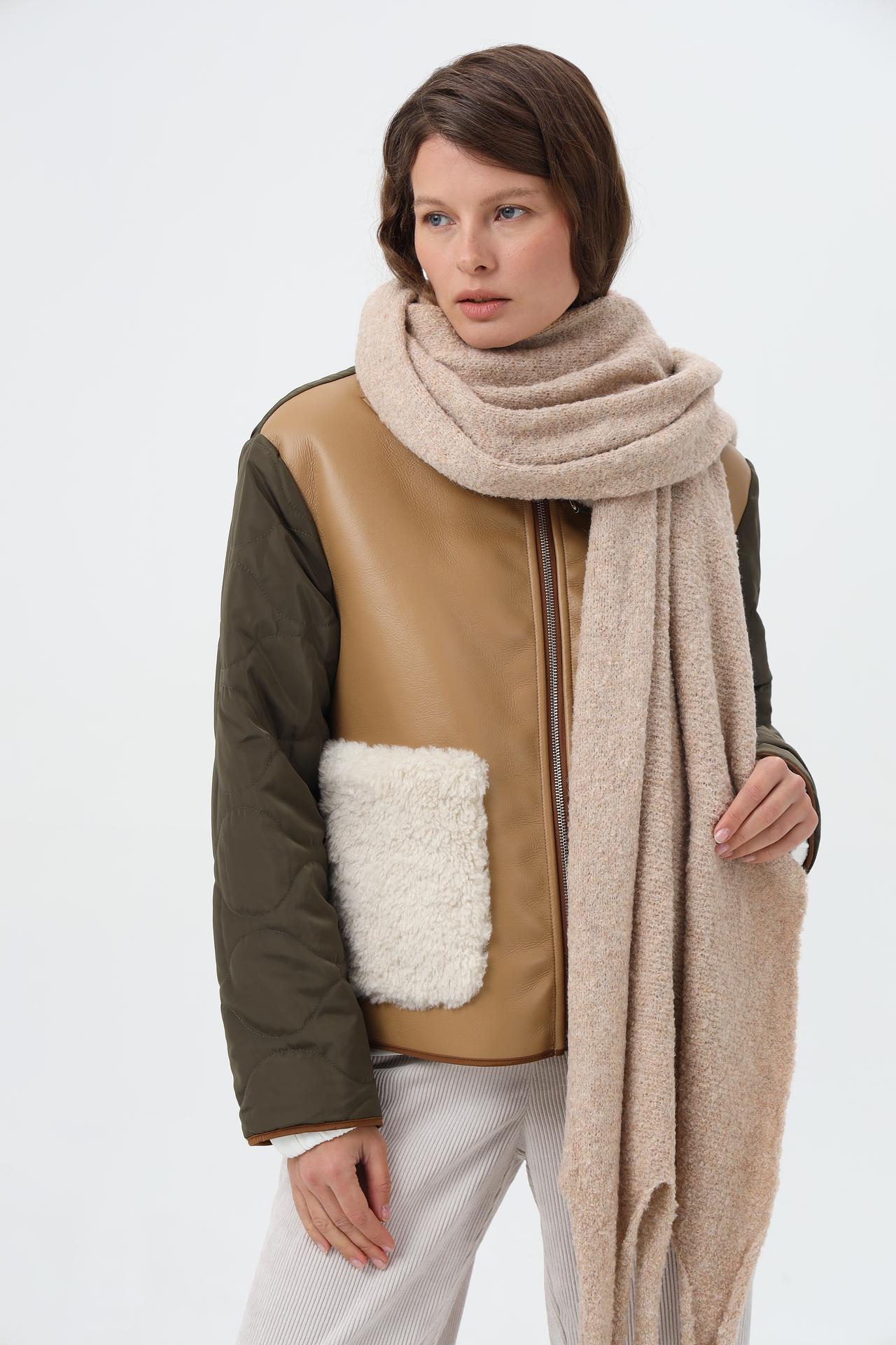 - Универсальность: Шарф прекрасно сочетается с пальто, куртками и пуховиками, добавляя образу завершенность. Его нейтральный цвет позволяет комбинировать его с одеждой различных оттенков.