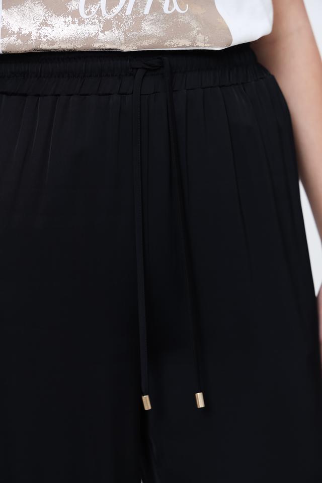 Чёрные брюки-кюлоты от Just Valeri – стильное и комфортное решение для создания модных образов. Модель выполнена из мягкой и приятной к телу ткани, имеет завышенную талию и удобный пояс на кулиске. Состав: вискоза 50%, район 50%