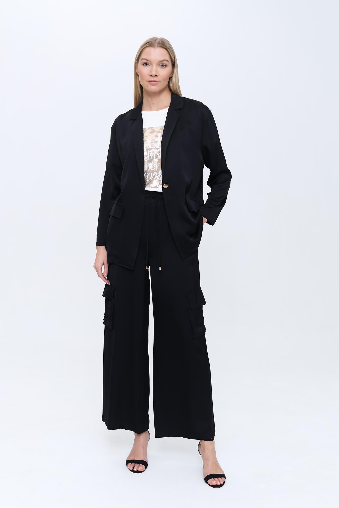 - Детали: Элегантная золотистая пуговица служит стильным акцентом, добавляя изысканности образу.