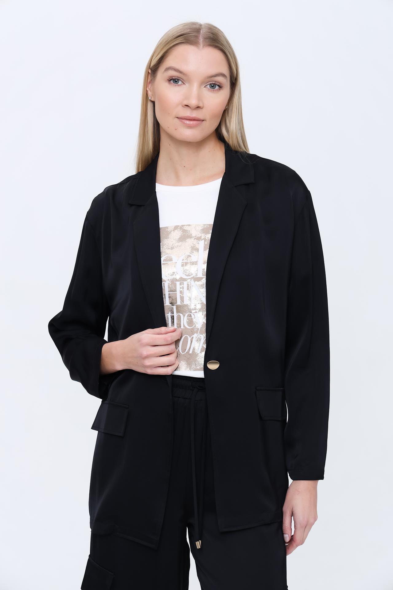 Элегантный черный жакет от Just Valeri – незаменимая вещь в гардеробе современной женщины. Идеальный крой и высокое качество материалов обеспечивают комфорт и безупречный вид на протяжении всего дня. Этот жакет легко впишется как в деловой образ, так и в более расслабленный вариант для прогулок или встреч с друзьями.