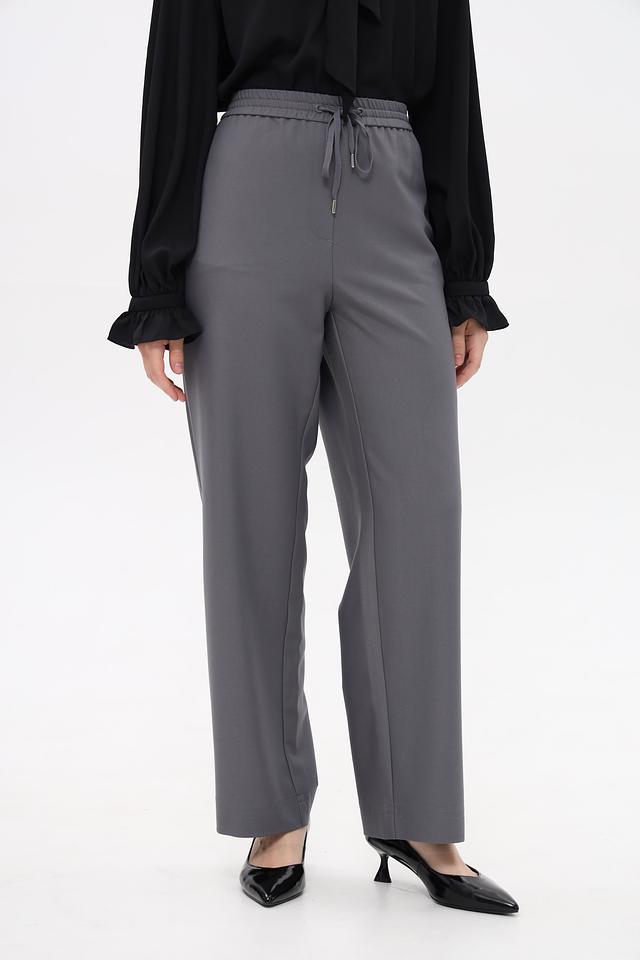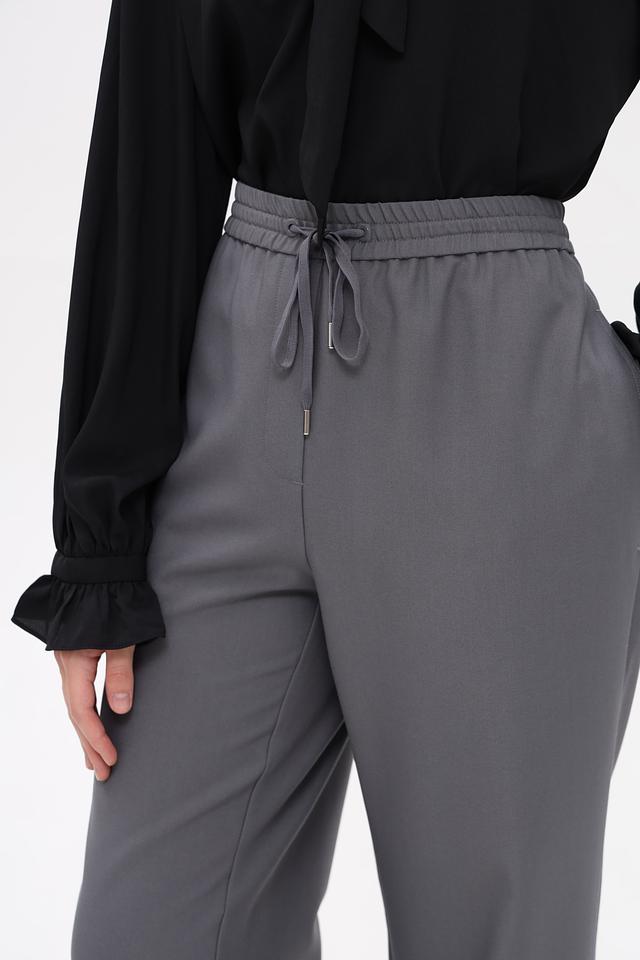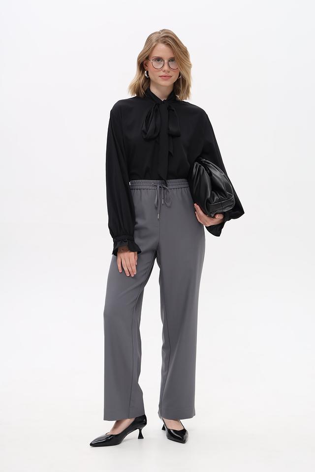 Модель выполнена в сером цвете и имеет классический крой, который подойдет для создания различных образов – от деловых до повседневных. Брюки оснащены удобной резинкой на поясе и завязками для оптимальной посадки.