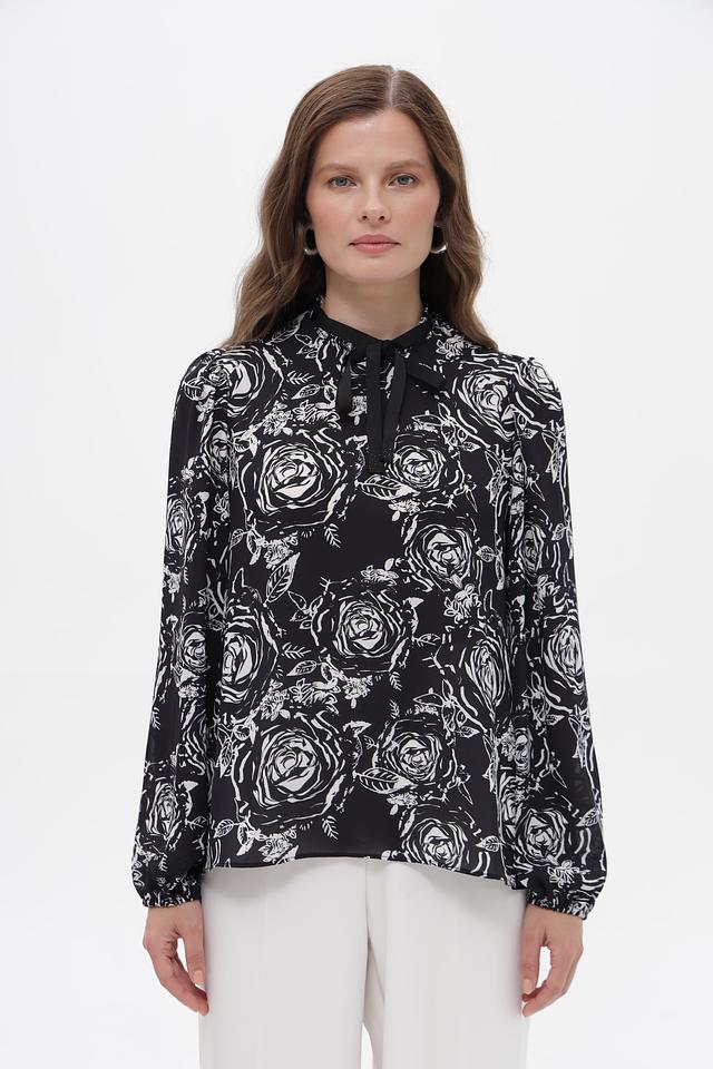 Стильная блузка Just Valeri чёрного цвета с цветочным принтом. Изготовлена из 100% полиэстера, что обеспечивает лёгкость и комфорт в носке. Прекрасный выбор для создания элегантного образа. Состав: полиэстер 100%