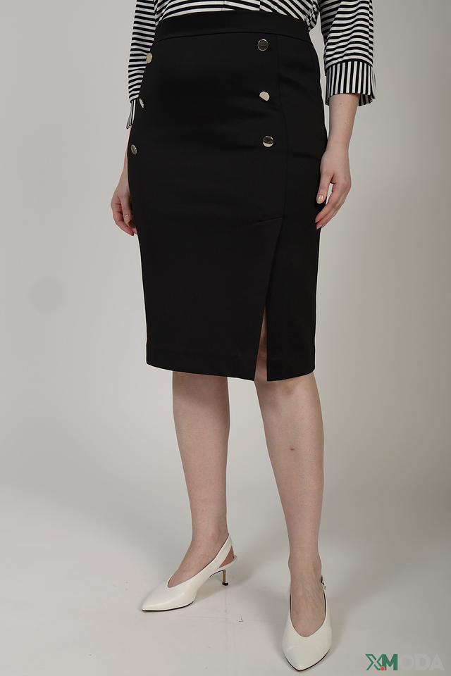 Чёрная юбка-карандаш от Just Valeri – элегантный выбор для создания делового или повседневного образа. Модель выполнена из качественного полиэстера со спандексом, обеспечивающим комфортную посадку и свободу движений. Декоративные пуговицы добавляют изысканности. Состав: полиэстер 95%, спандекс 5%