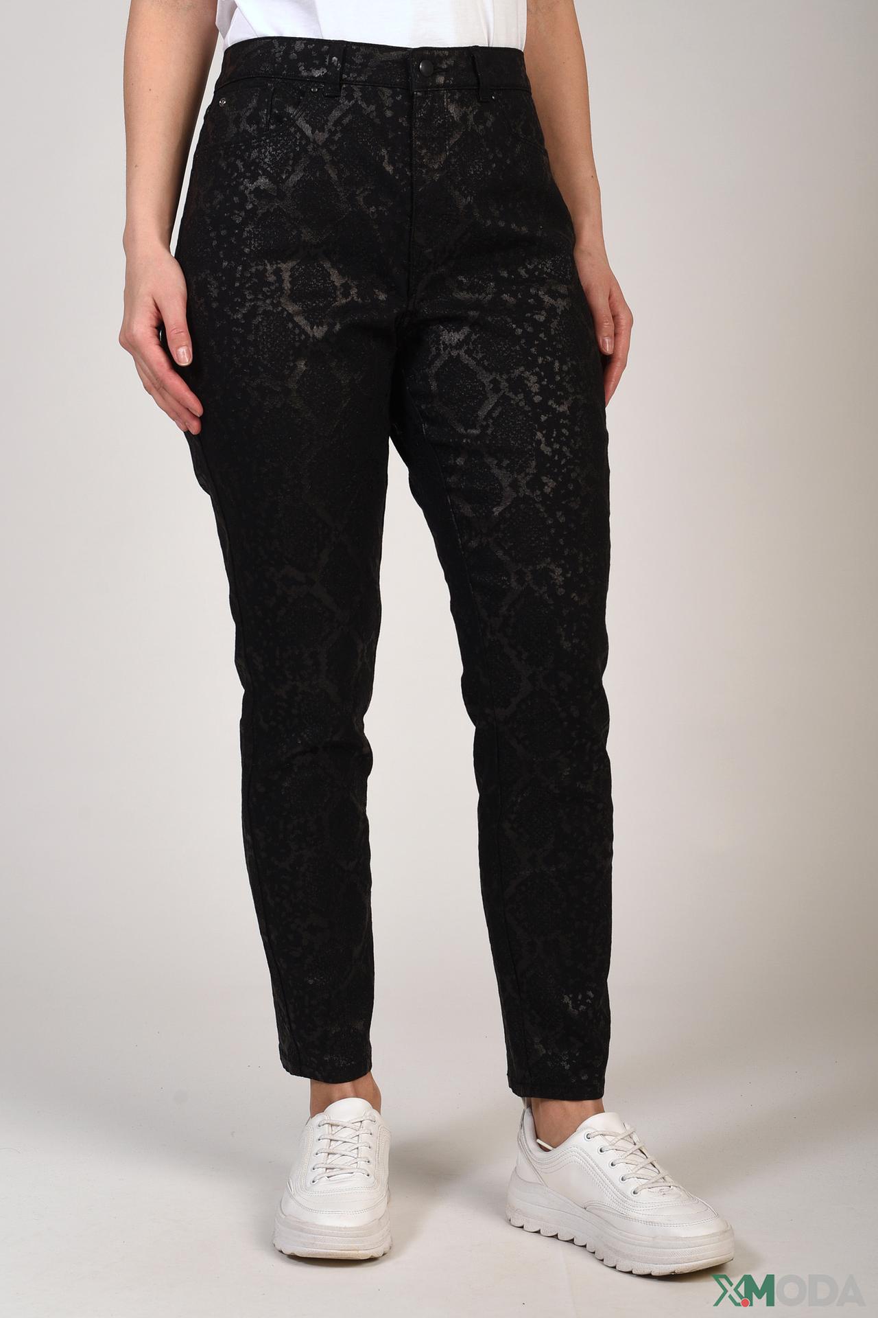 - Дизайн: Брюки выполнены в черном цвете с эффектным принтом, который добавляет актуальности и оригинальности. Зауженный силуэт визуально удлиняет ноги и создает стройный образ.
