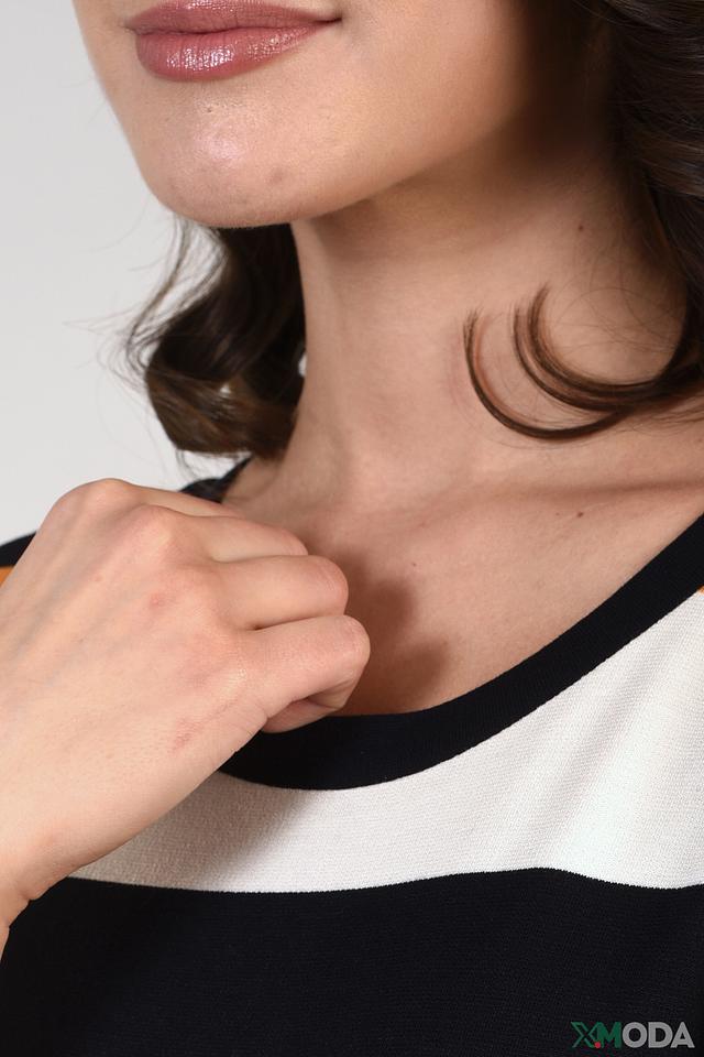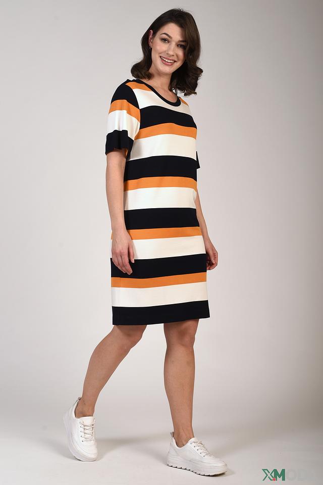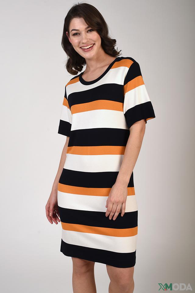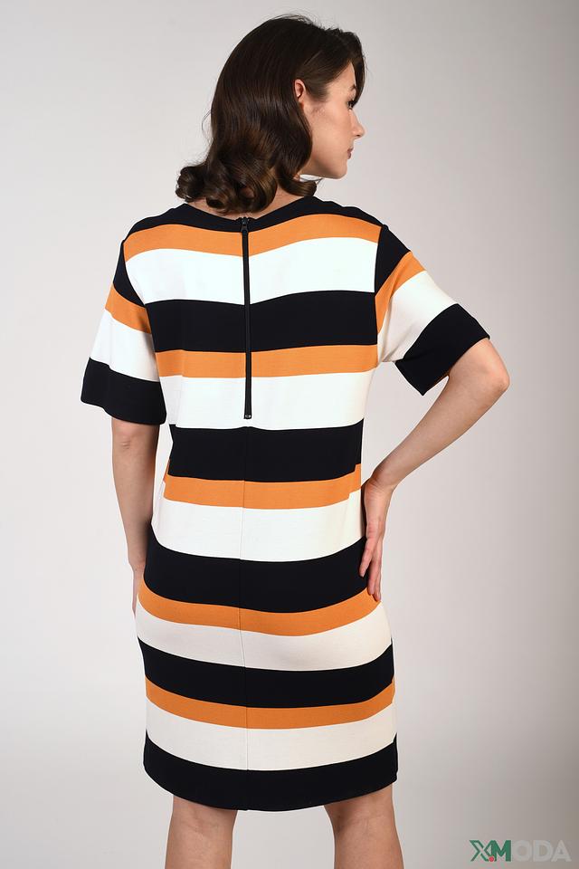 Это платье от бренда Just Valeri станет отличным дополнением к вашему гардеробу. Модель выполнена в яркой полосатой расцветке, сочетающей в себе белый, оранжевый и черный цвета.