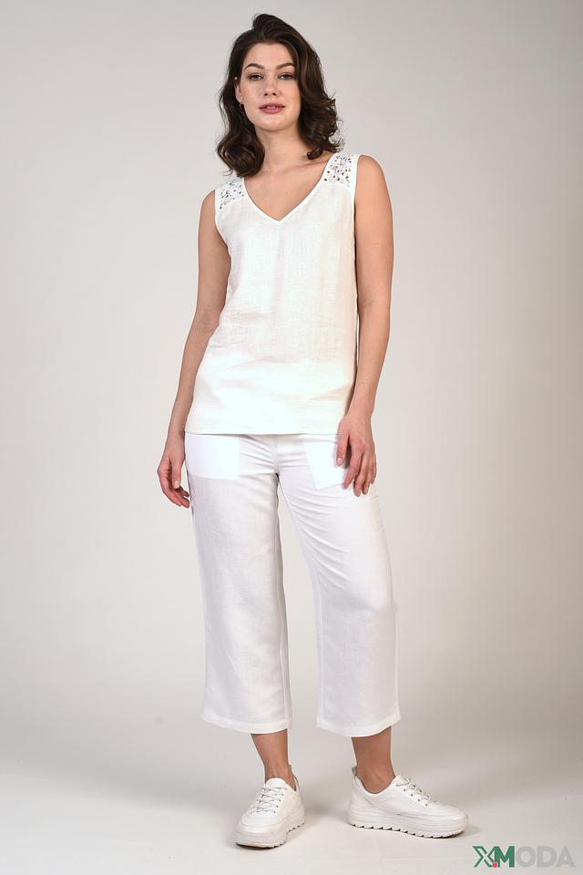 Лёгкий топ Just Valeri молочного цвета с изящной кружевной отделкой на плечах. Выполнен из натурального льна, обеспечивающего комфорт в жаркую погоду. Идеальный выбор для создания летних образов. Состав: лен 100%, Состав_отделка полиэстер 100%