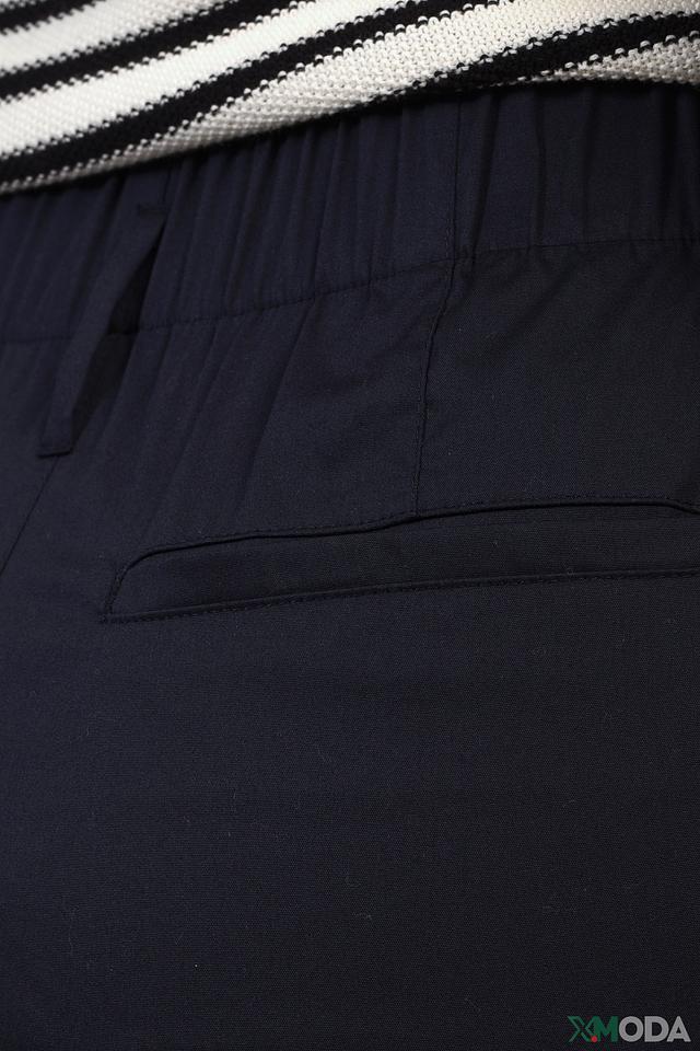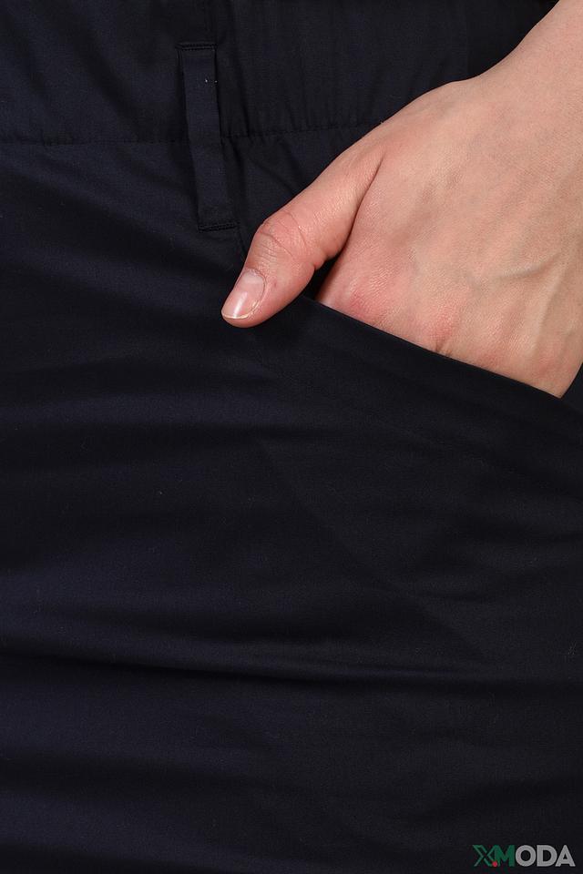 Модель имеет прямую форму, длину миди и удобный пояс на резинке. Боковые карманы добавляют практичности. Ткань плотная, хорошо держит форму и не мнется.