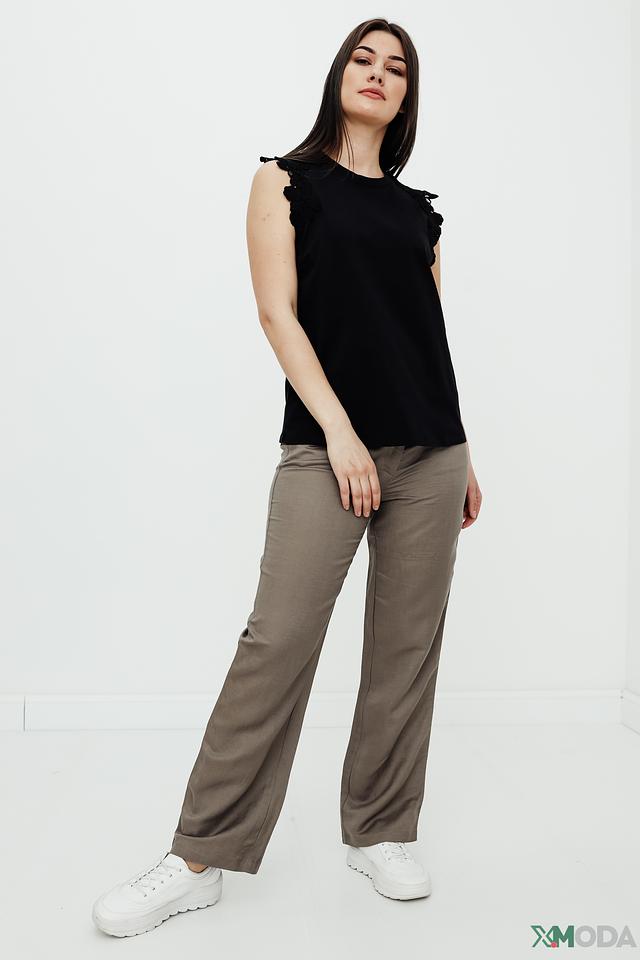 Особенностью данного топа являются декоративные оборки на плечах, которые придают ему женственность и изысканность. Круглый вырез горловины и отсутствие рукавов делают этот топ идеальным выбором для тёплой погоды.