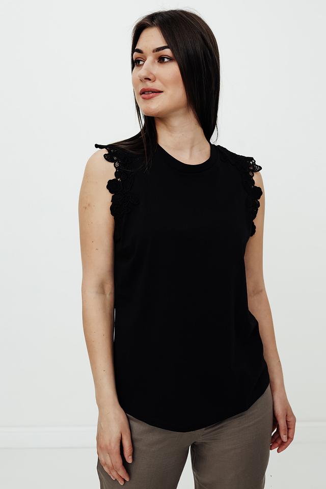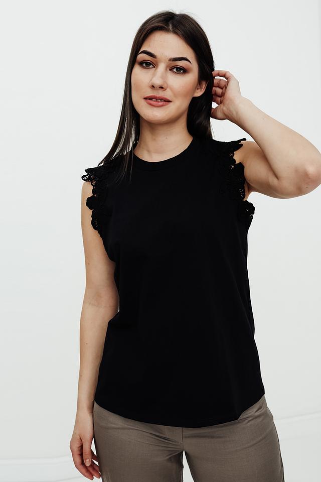 Чёрный топ от Just Valeri – это стильная и удобная модель с декоративными оборками на плечах. Изготовлен из 100% хлопка, обеспечивающего комфорт в носке. Идеально подходит для создания повседневных образов. Состав: хлопок 100%