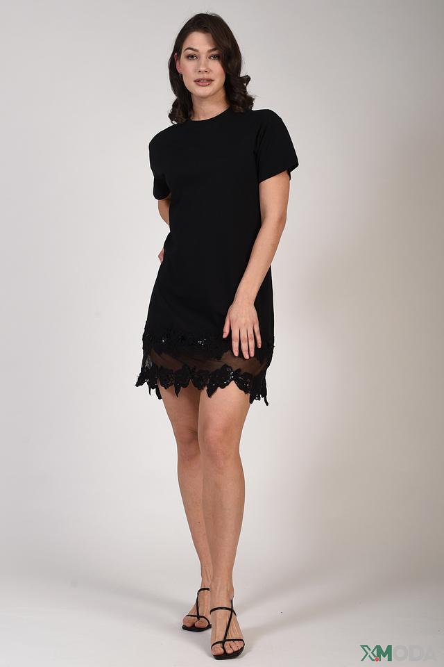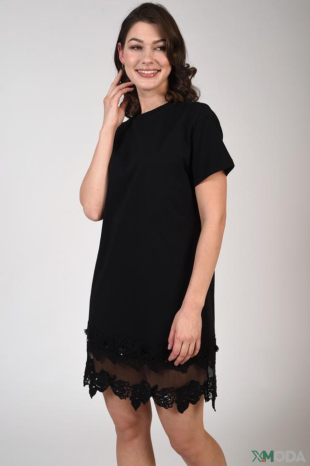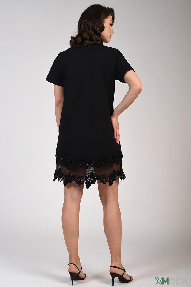 Черное платье от Just Valeri – это элегантная модель из 100% хлопка с изящным кружевным декором по низу. Платье имеет прямой силуэт и короткие рукава, что делает его идеальным выбором для создания стильного повседневного образа. Состав: хлопок 100%