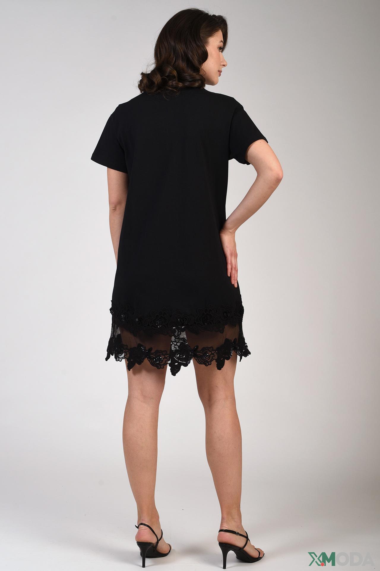 - Дизайн: Классический черный цвет платья дополнен изящным кружевным подолом с декоративными элементами, придающими изделию женственность и утонченность.