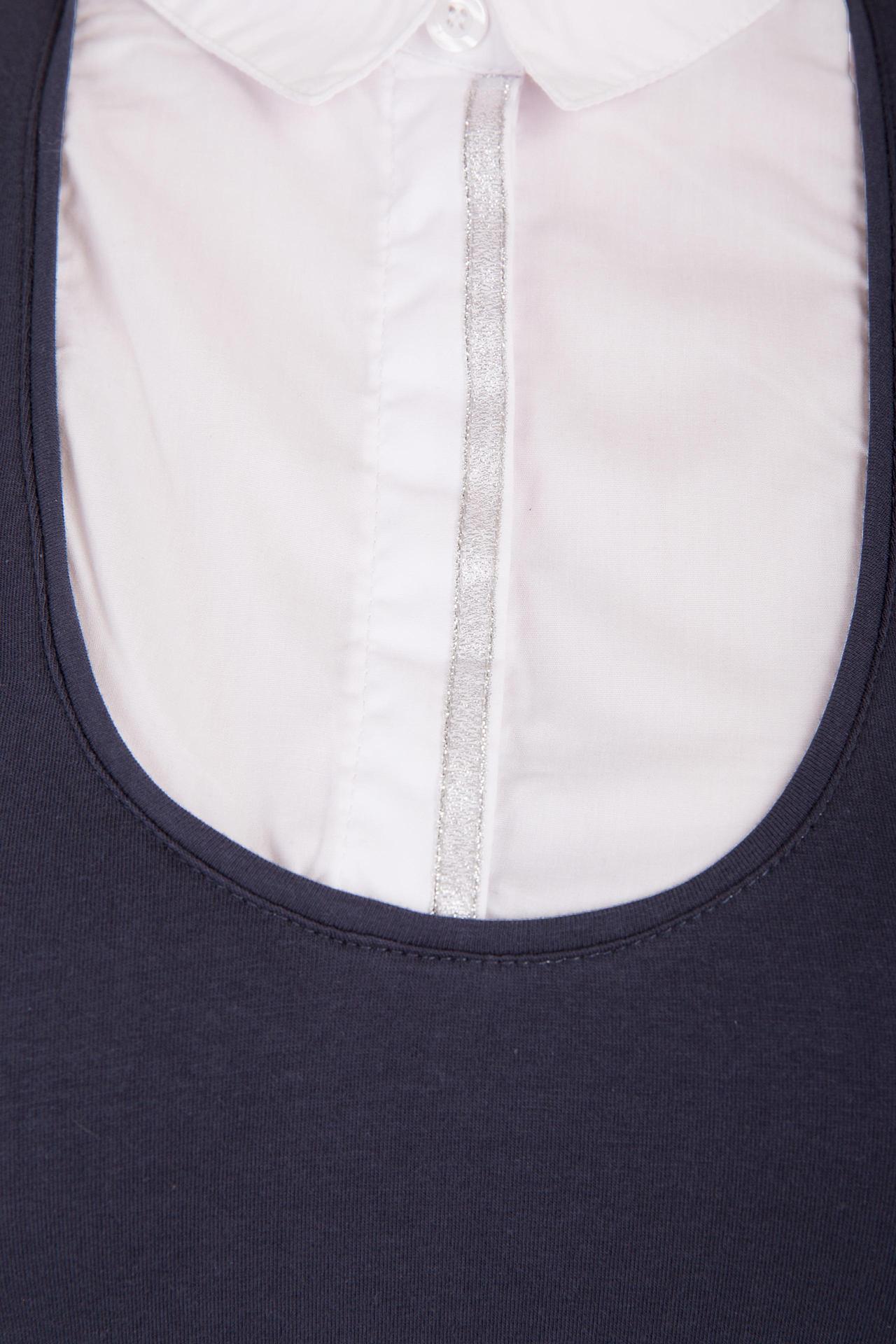 Блузa Just Valeri бело-синяя. Основной фон этого изделия строгий и темный, а вставка на лифе напоминает под одетую под него блузу. Очень необычное и оригинальное решение. Модель обладает свободным силуэтом и очень красиво сидит по фигуре. Состав: хлопок плюс спандекс. Очень практичная и в высшей степени комфортная вещь для изысканной женщины.