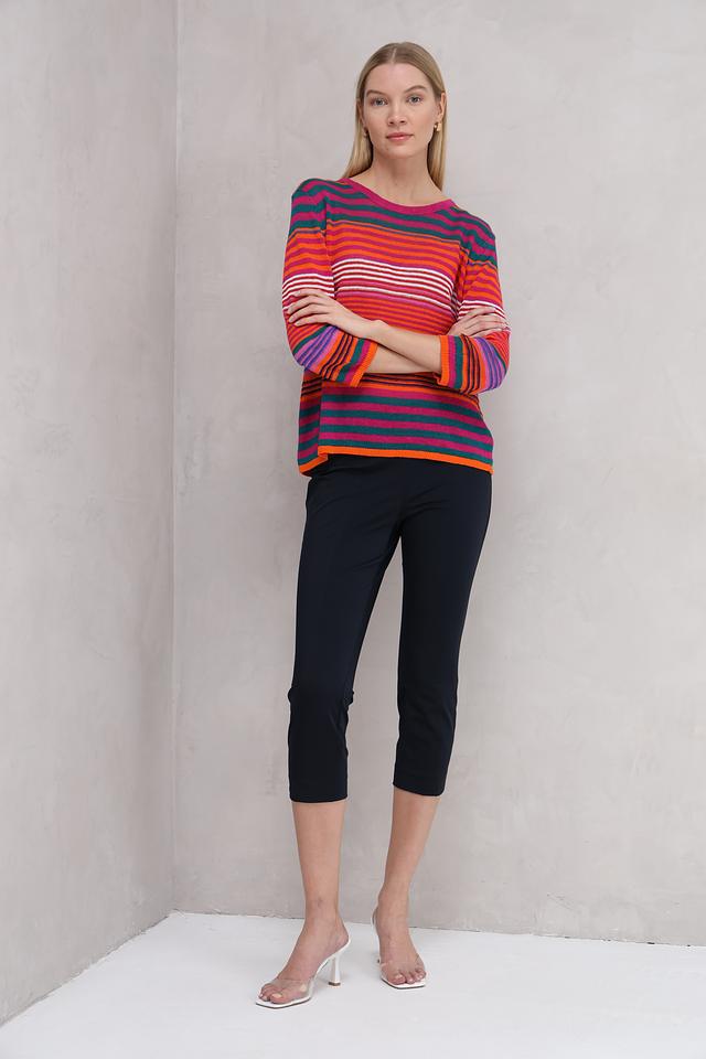 Эти капри идеально подойдут для создания как повседневных, так и более формальных образов. Их можно сочетать с блузками, топами, футболками и жакетами. Застежка — пояс на эластичной резинке. Данная модель станет отличным дополнением к вашему гардеробу.