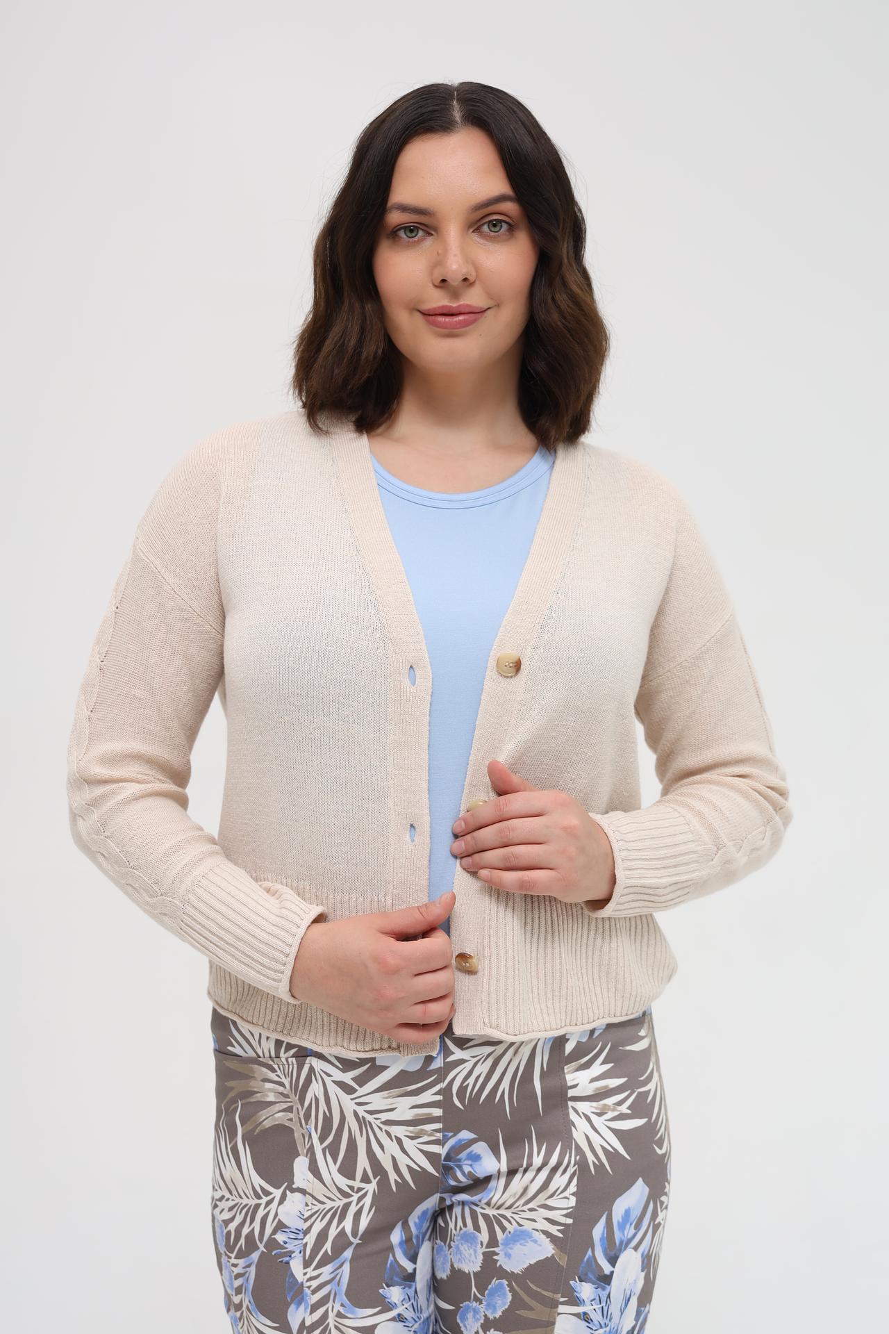 Кардиган Gerry Weber бежевый, пуговицы, лен и вискоза