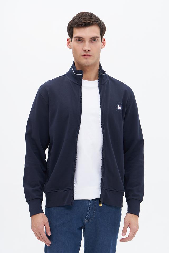 Мужской кардиган Granchio тёмно-синего цвета на молнии, выполнен из 100% хлопка. Удобный и практичный выбор для повседневного гардероба. Классический крой и лаконичный дизайн. Состав: хлопок 100%