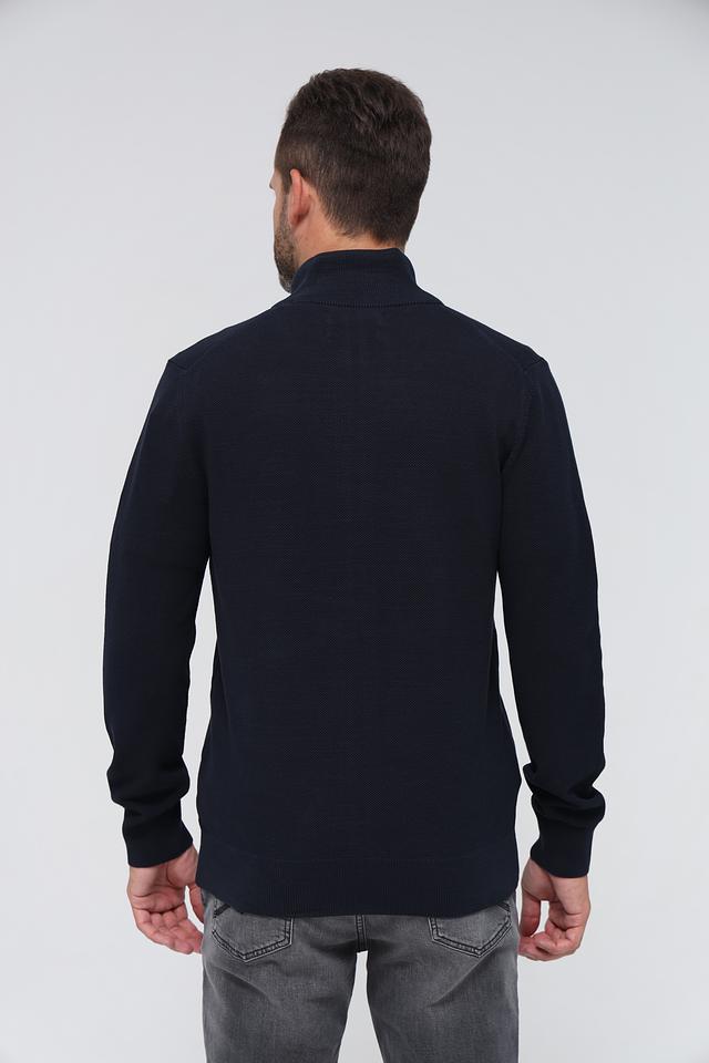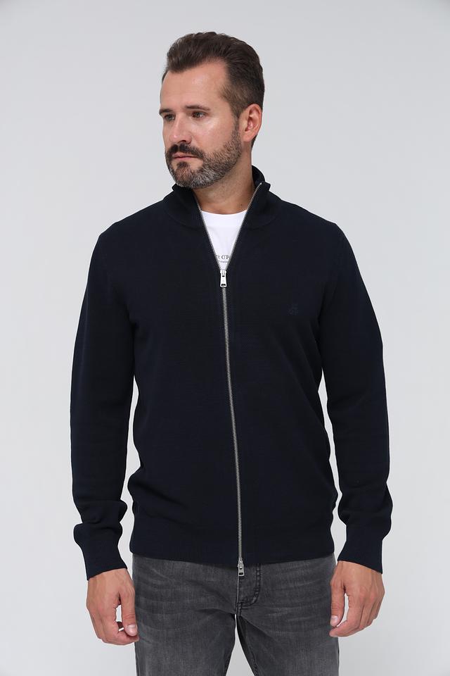 Кардиган имеет тёмно-синий цвет, который легко сочетается с различными элементами одежды. Он изготовлен из высококачественного хлопка, что обеспечивает комфорт и приятные ощущения при носке. Застёжка на молнии позволяет регулировать степень тепла и создавать различные образы.