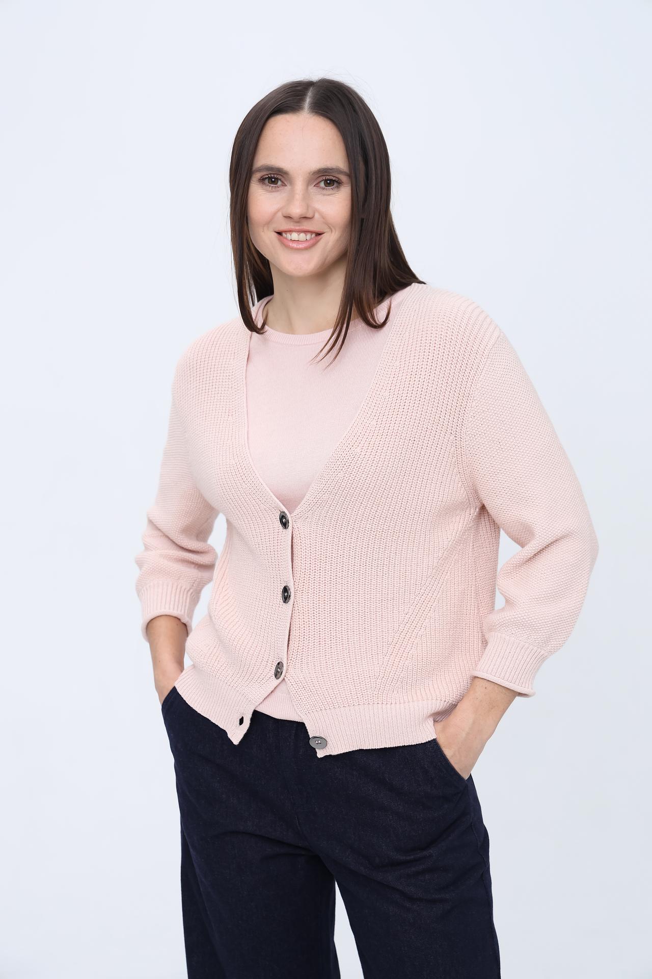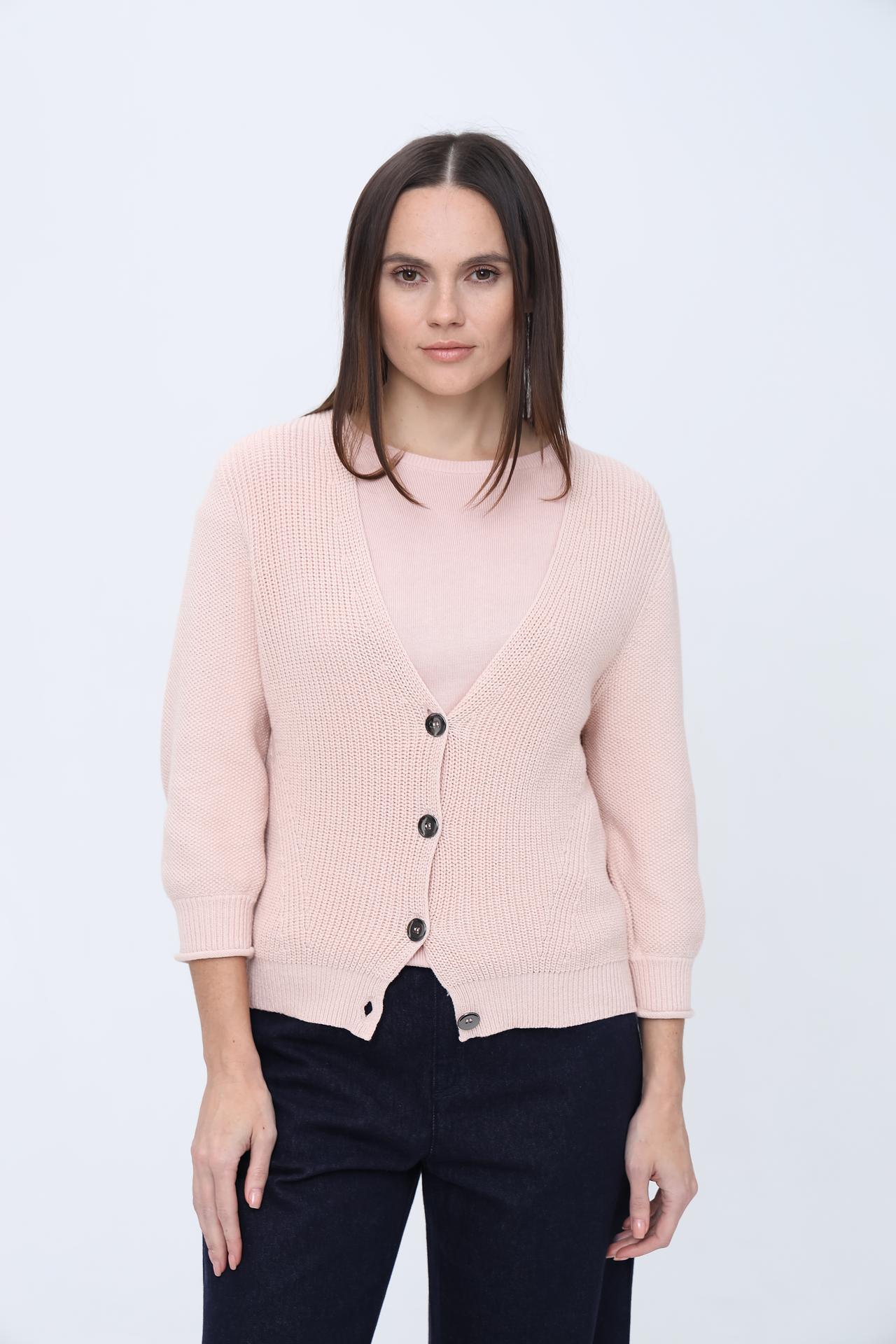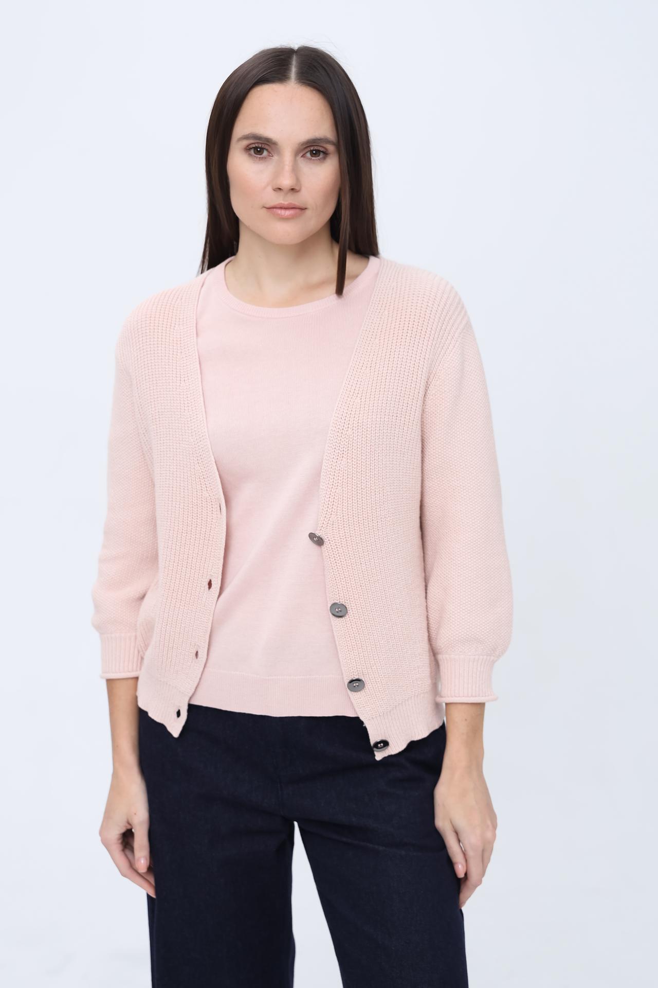 Кардиган Pezzo из 100% хлопка пудрового цвета на пуговицах