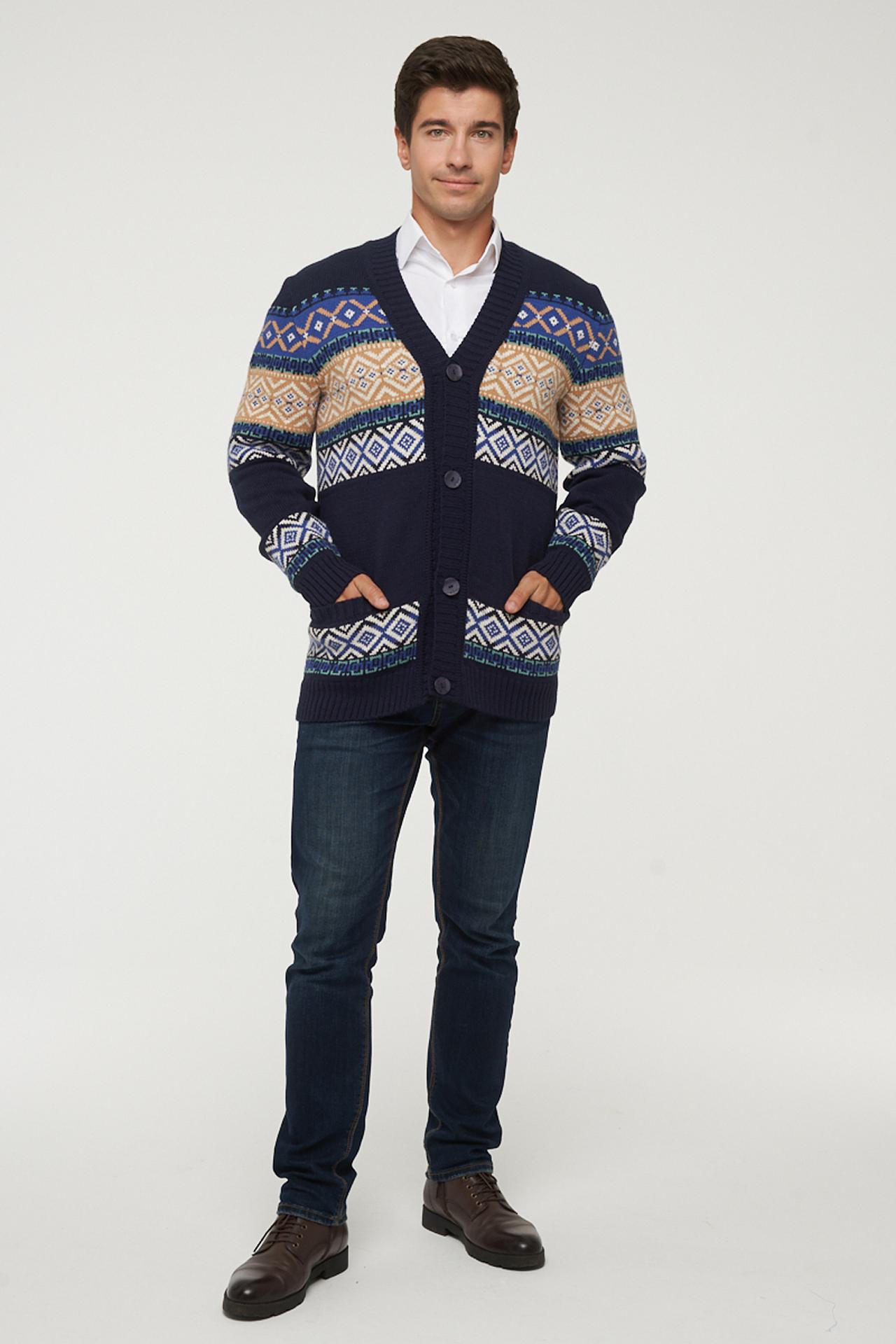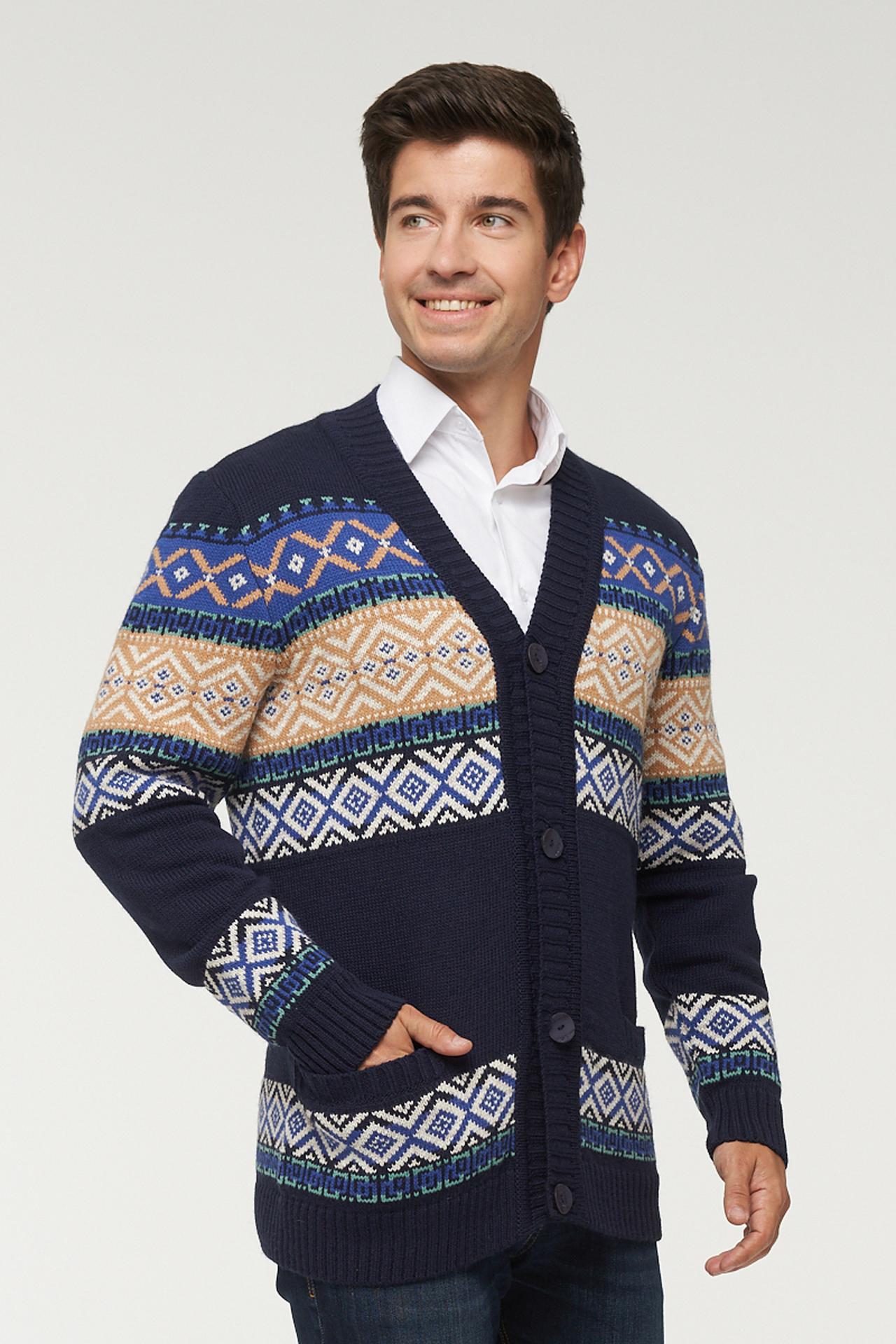 Мужской кардиган VAY – это стильное и комфортное решение для прохладной погоды. Изготовлен из качественной смесовой ткани (30% шерсть, 70% пан), которая обеспечивает мягкость, тепло и приятные тактильные ощущения. Модель выполнена в классическом дизайне с V-образным вырезом и дополнена красивым норвежским узором.