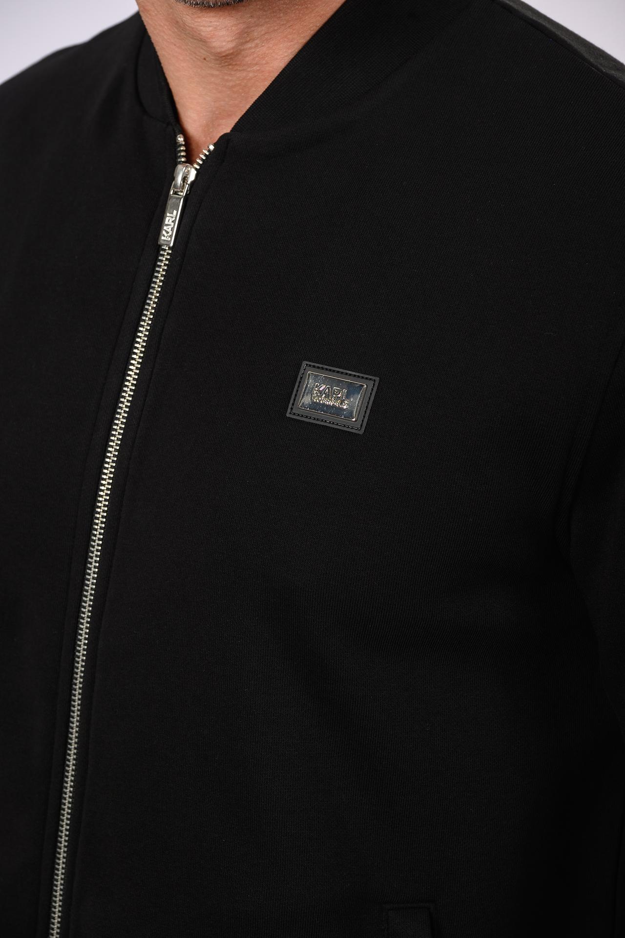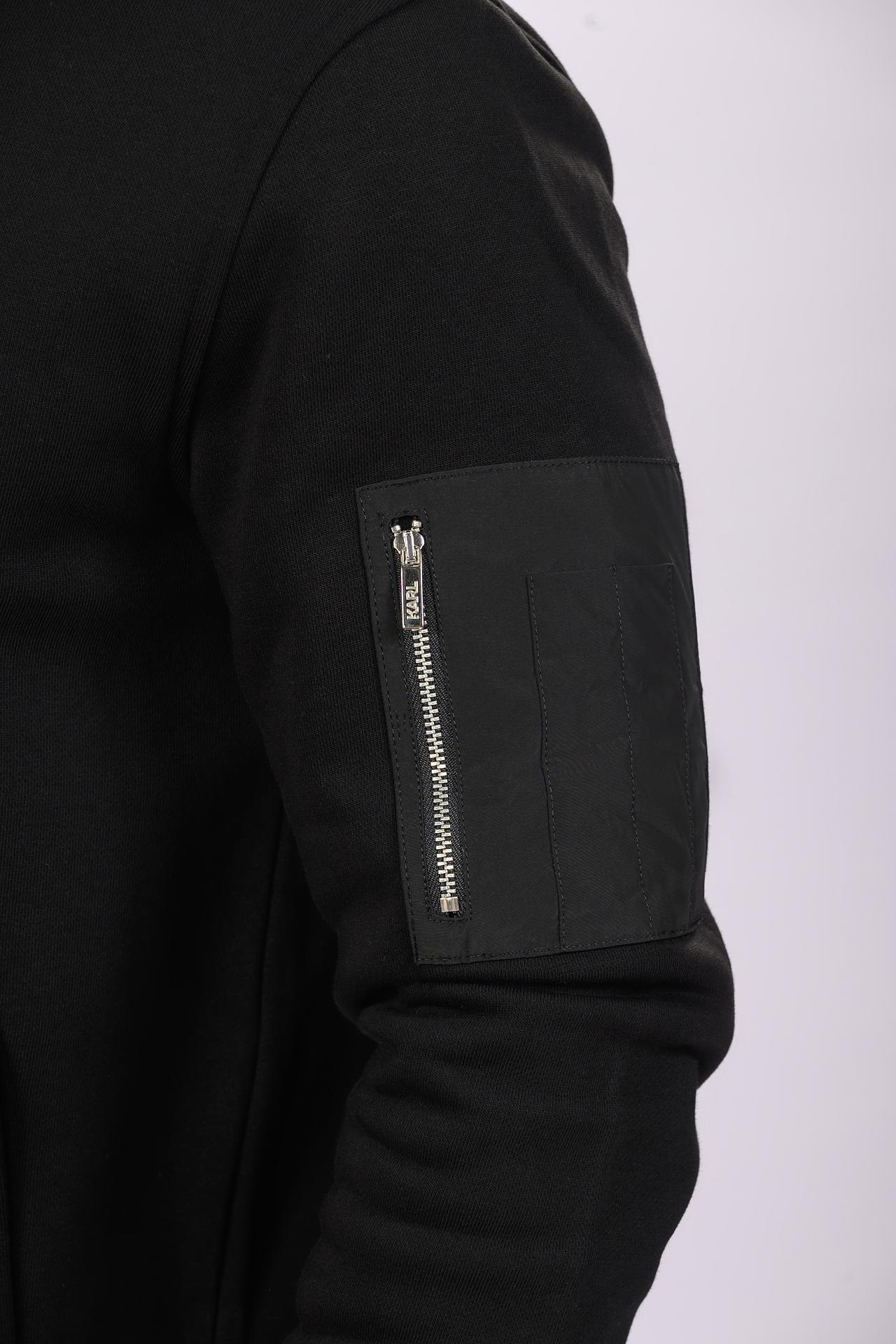 - Детали: На левом рукаве расположен вместительный накладной карман с молнией и отделкой из контрастной ткани. На груди — фирменная нашивка Karl Lagerfeld, подчеркивающая эксклюзивность бренда.