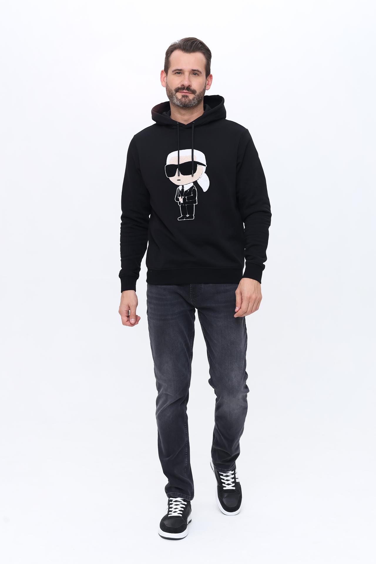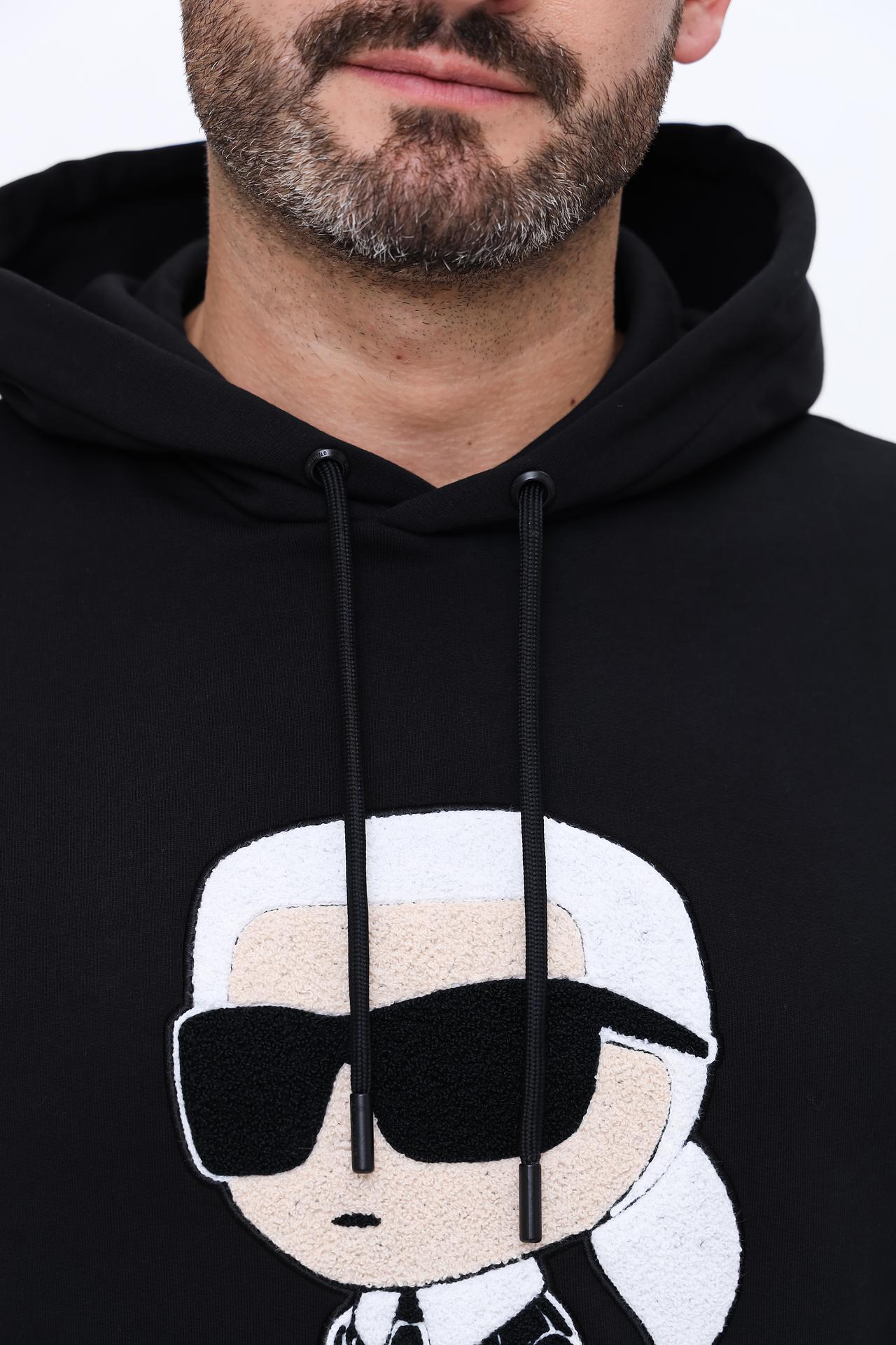 Базовая черная толстовка с капюшоном от Karl Lagerfeld, выполненная в классическом стиле, станет универсальным дополнением вашего гардероба. Изделие украшено оригинальным принтом в виде стилизованного изображения Карла Лагерфельда. Модель отличается высоким качеством материалов и безупречным исполнением, что характерно для бренда.
