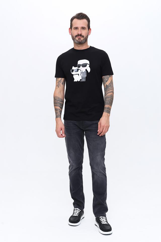Чёрная футболка Karl Lagerfeld с оригинальным принтом — стильный выбор для повседневного гардероба. Изготовлена из 100% хлопка, обеспечивающего комфорт и удобство в носке. Состав: хлопок 100%