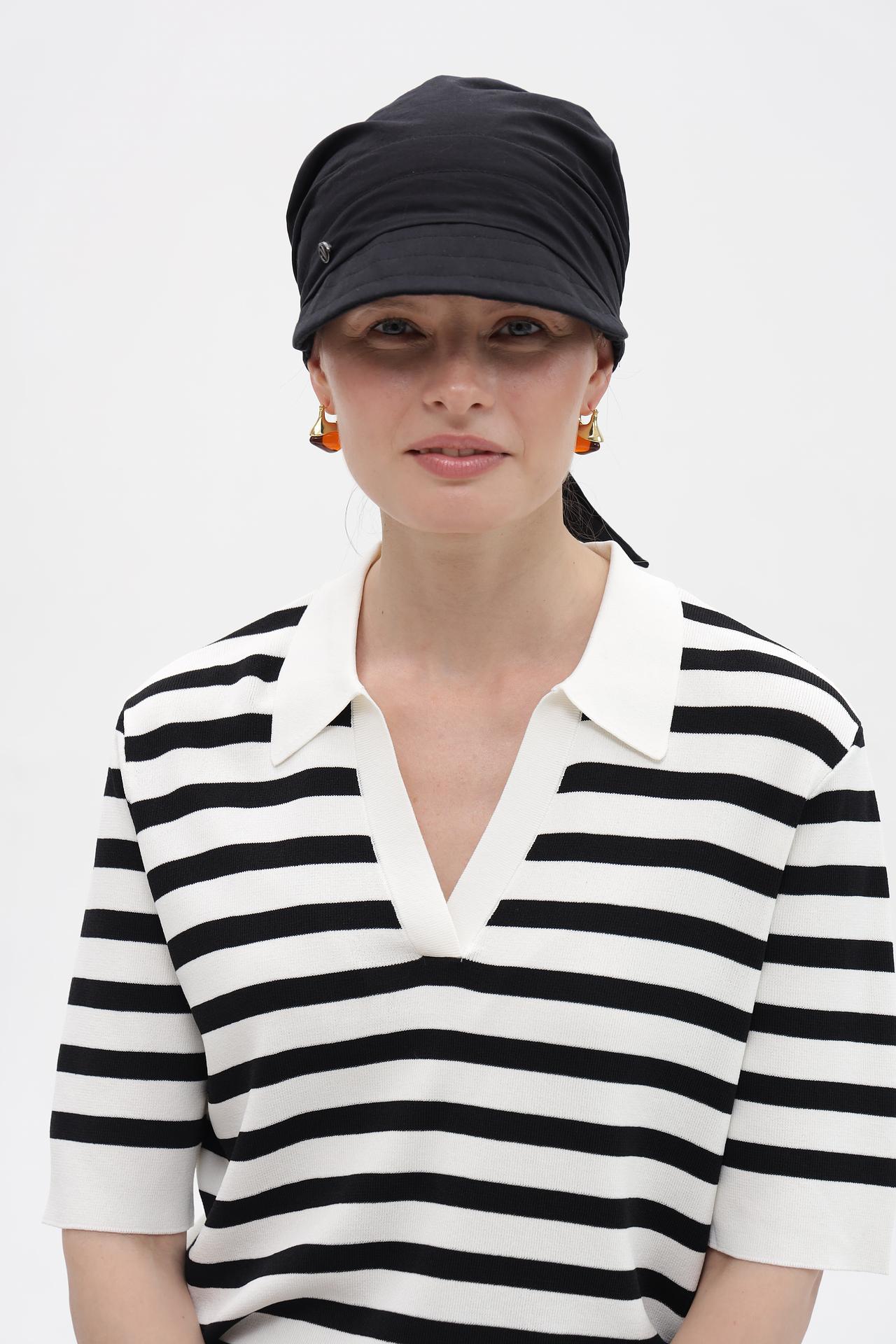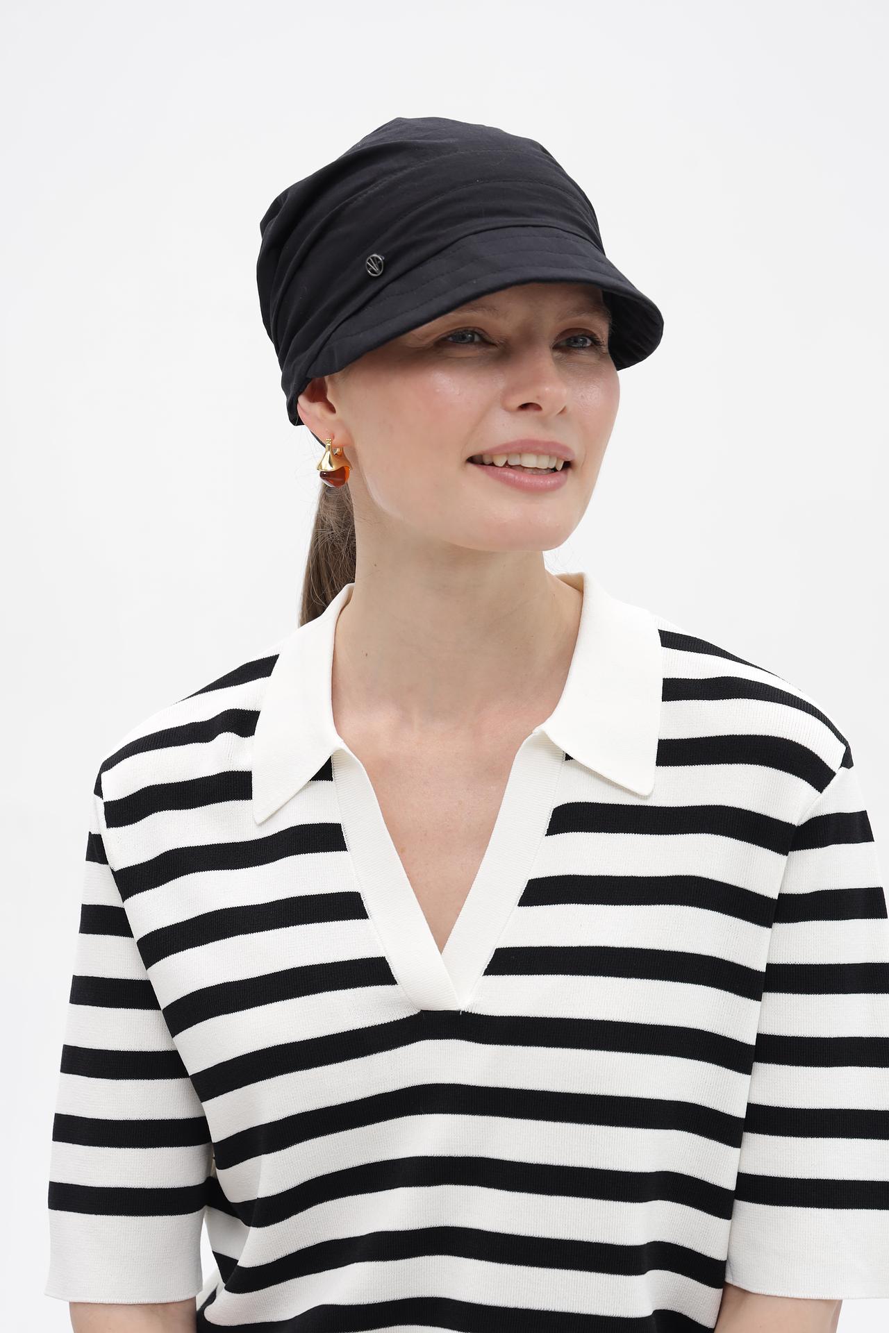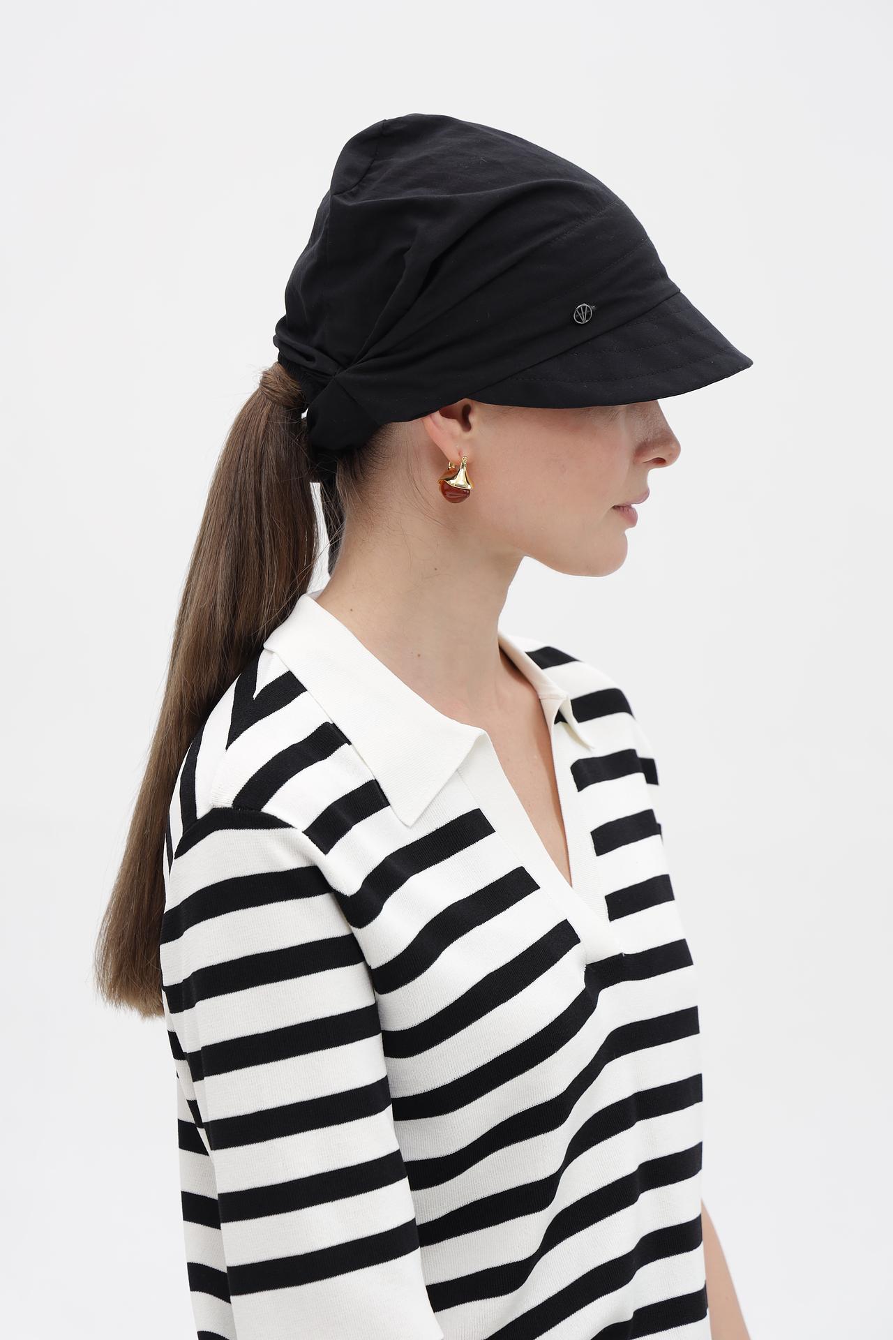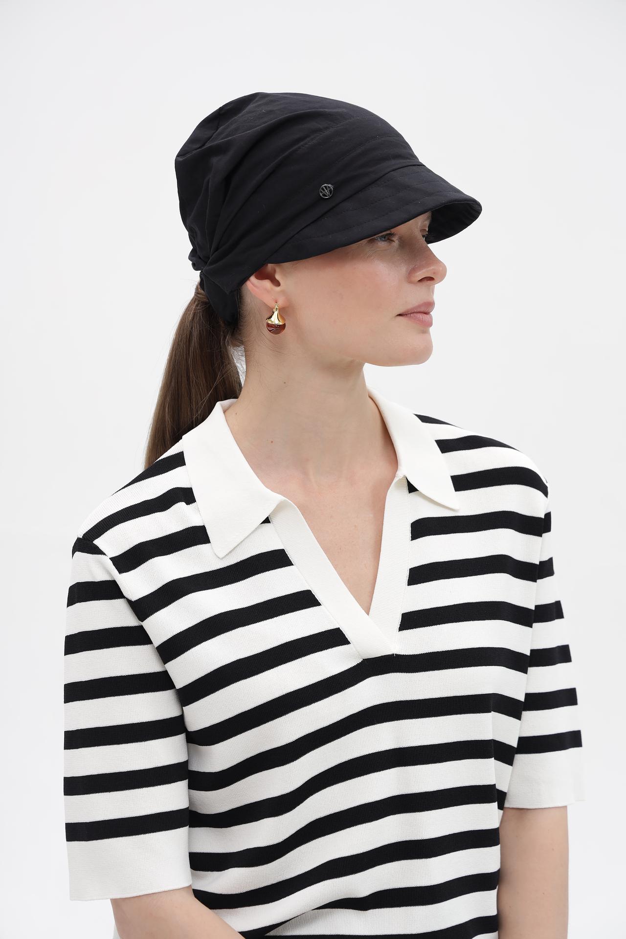 - Дизайн: Классическая кепка с элегантным черным цветом и минималистичным декором в виде логотипа бренда.