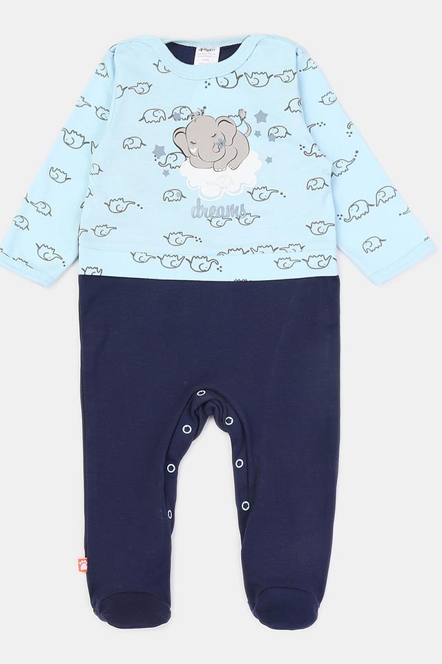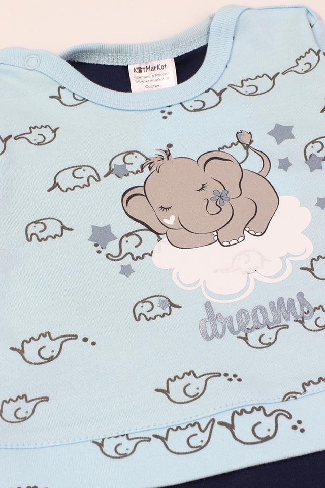 Комбинезон КотМарКот голубого цвета с принтом слонёнка — удобная и практичная одежда для новорожденных. Изготовлен из мягкого 100% хлопка, обеспечивающего комфорт и безопасность для малыша. Состав: хлопок 100%