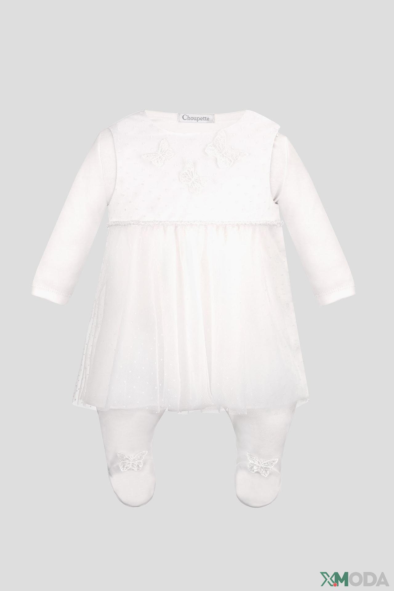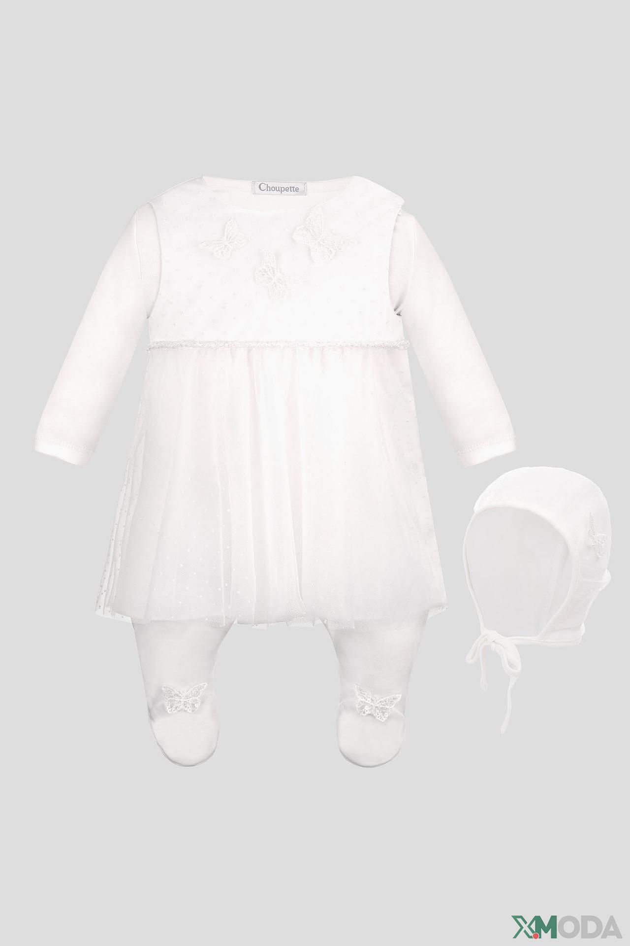 Нежный комплект от Choupette для самых маленьких принцесс. Идеальный выбор для выписки из роддома или крещения малышки. Комплект выполнен из мягкого, приятного на ощупь 100% хлопка, который обеспечит максимальный комфорт и безопасность для чувствительной кожи младенца. Нарядный дизайн с вышивкой бабочек, украшающей изделие, сделает образ вашей девочки незабываемым.