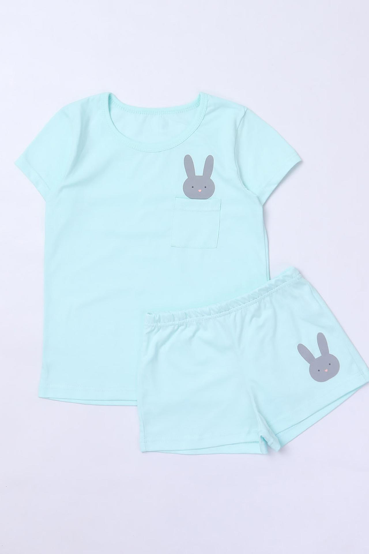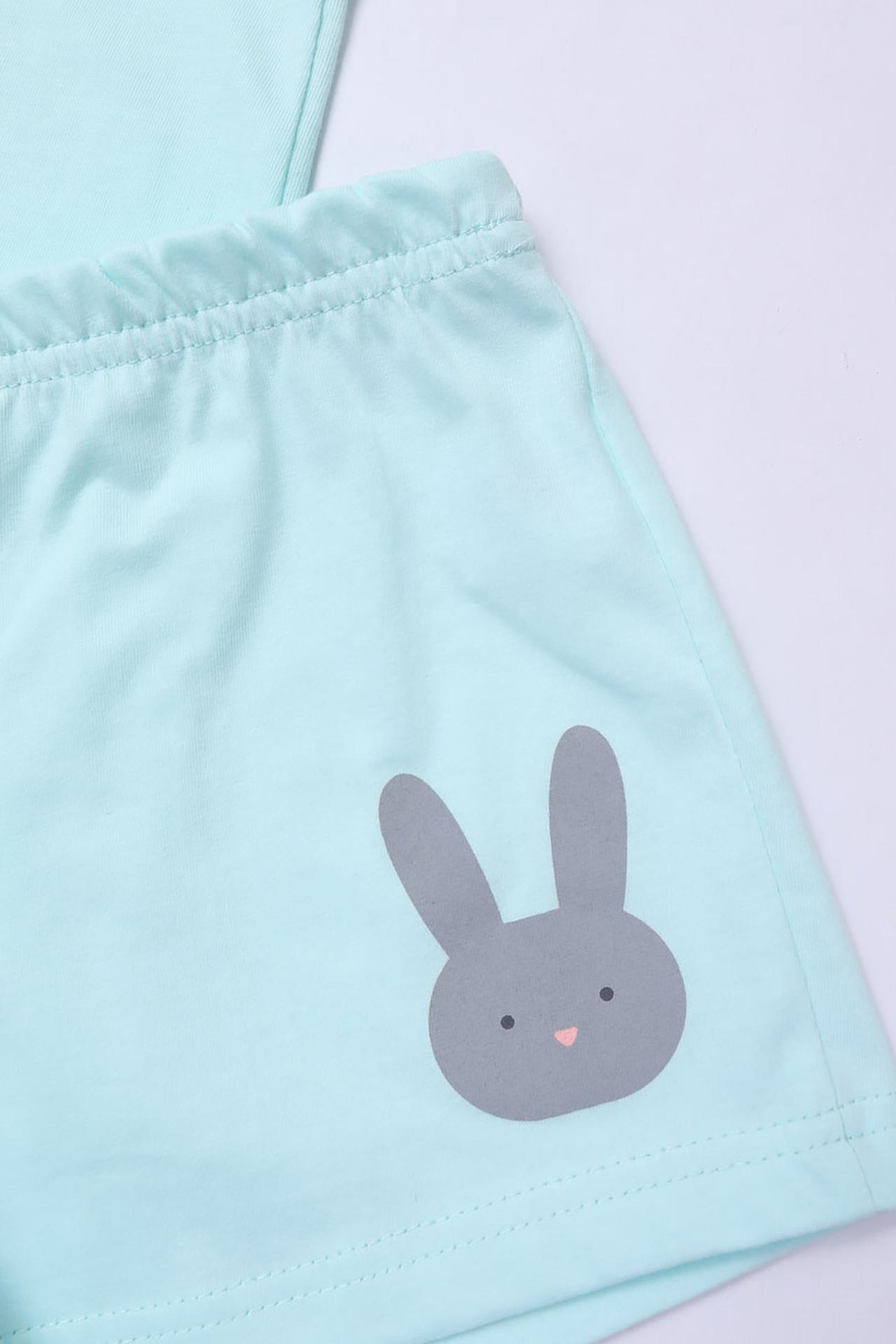- Продуманный дизайн: Футболка прямого кроя с круглым вырезом и удобными шортами с эластичным поясом обеспечивают полную свободу движений. Оригинальный кармашек на футболке и очаровательный принт зайчика на обоих элементах комплекта добавляют изделию уникальности и игривости.