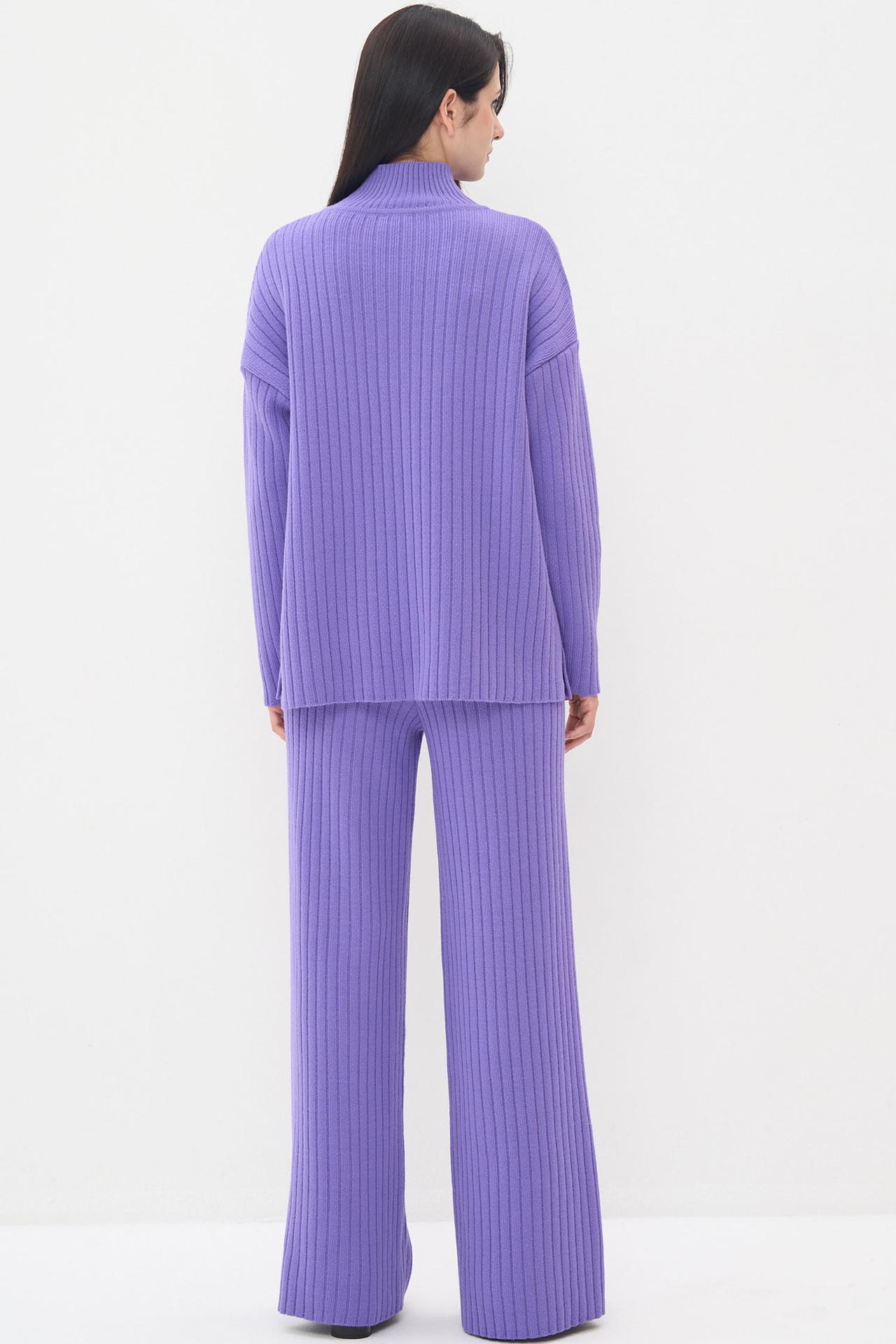 Прямой крой брюк и свободный силуэт свитера создают элегантный образ, подходящий как для повседневной носки, так и для особых случаев. Модель выполнена в актуальном сиреневом цвете, который добавит яркости в ваш образ.