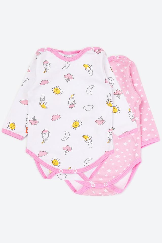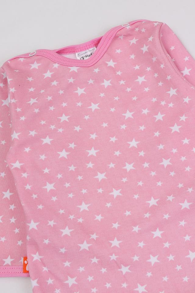 Это боди от бренда КотМарКот станет отличным выбором для вашего новорожденного. Боди выполнено в нежном розовом цвете и украшено мелким белым рисунком в виде звёздочек.