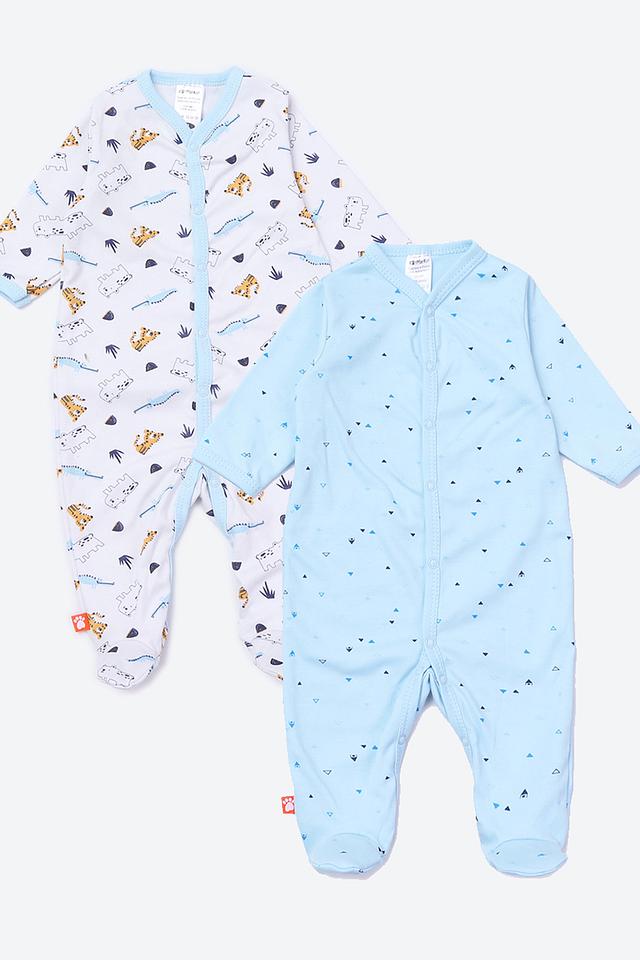 Детский комбинезон КотМарКот голубого цвета с ярким принтом в виде милых зверюшек – отличный выбор для новорожденных. Комплект состоит из двух комбинезонов, выполненных из мягкого и приятного к телу 100% хлопка. Состав: хлопок 100%