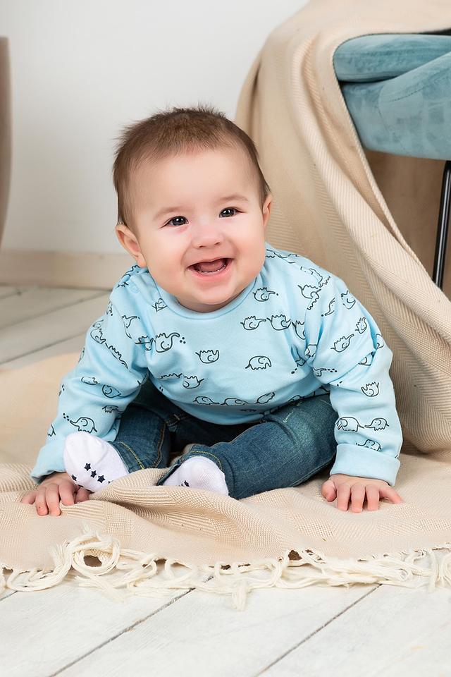 Голубой джемпер от КотМарКот для мальчика с забавным принтом. Изготовлен из мягкого хлопка, обеспечивающего комфорт и удобство в носке. Отличный выбор для повседневной носки. Состав: хлопок 100%