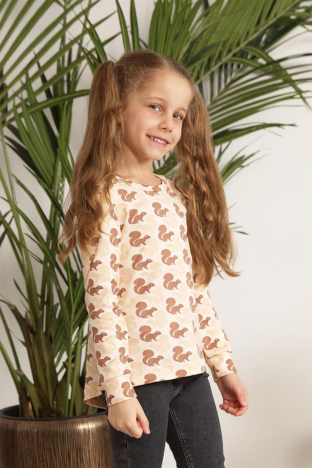 Эта милая футболка от бренда КотМарКот станет отличным дополнением к гардеробу вашей девочки. Футболка выполнена в нежном бежевом цвете и украшена забавным принтом с изображением белок.
