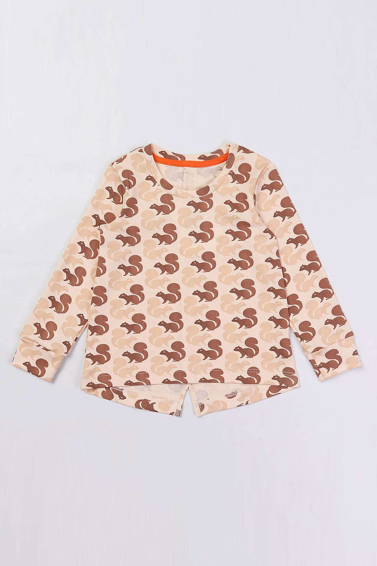 - Яркий дизайн: Изделие украшено оригинальным и милым принтом с изображением забавных белок, который обязательно понравится вашему малышу. Такой стильный принт придает футболке игривый вид и делает ее заметной.