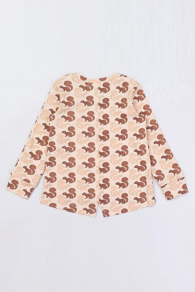 Детская футболка КотМарКот бежевого цвета с очаровательным принтом в виде белок. Изготовлена из мягкого и приятного к телу хлопка, обеспечивая комфорт в течение всего дня. Прекрасный выбор для повседневной носки. Состав: хлопок 100%